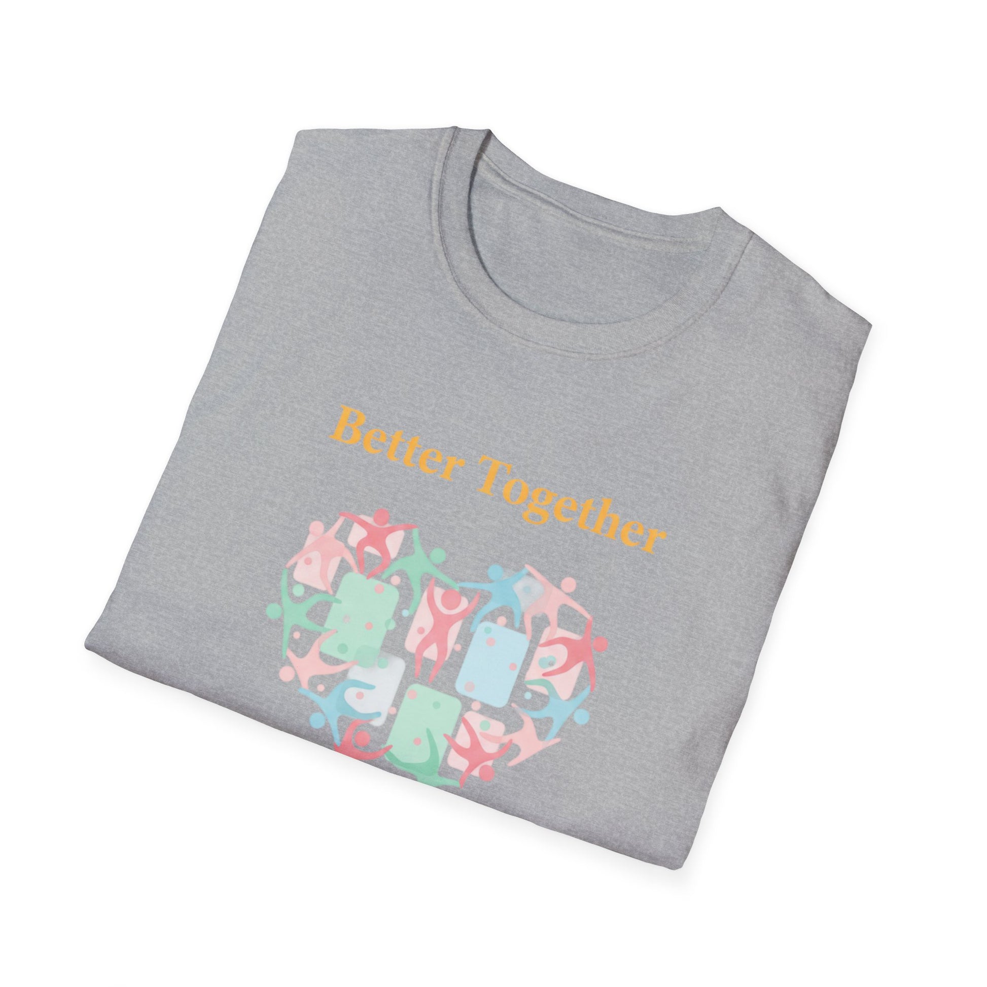 Lightweight, soft, and quietly joyful — this crewneck tee brings a gentle, heartfelt message into everyday wear. A pastel-heart collage of small figures and icons sits center-chest under the warm header “Better Together,” with a handwritten-style note below that reads “For My Amazing Friends.” The breathable ring-spun cotton feels comfortable all day, while the smooth print keeps the design bright without feeling stiff. Wear it on casual mornings, at small gatherings, or when you want to show appreciation without saying a word. It layers easily under a sweater or stands alone with jeans for an easy, thoughtful look.