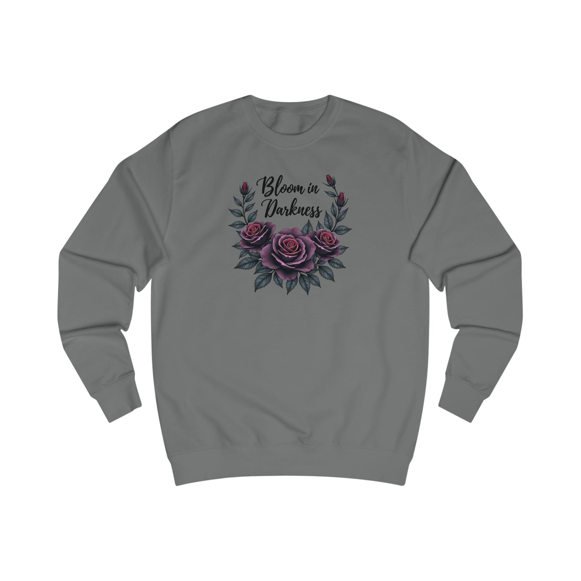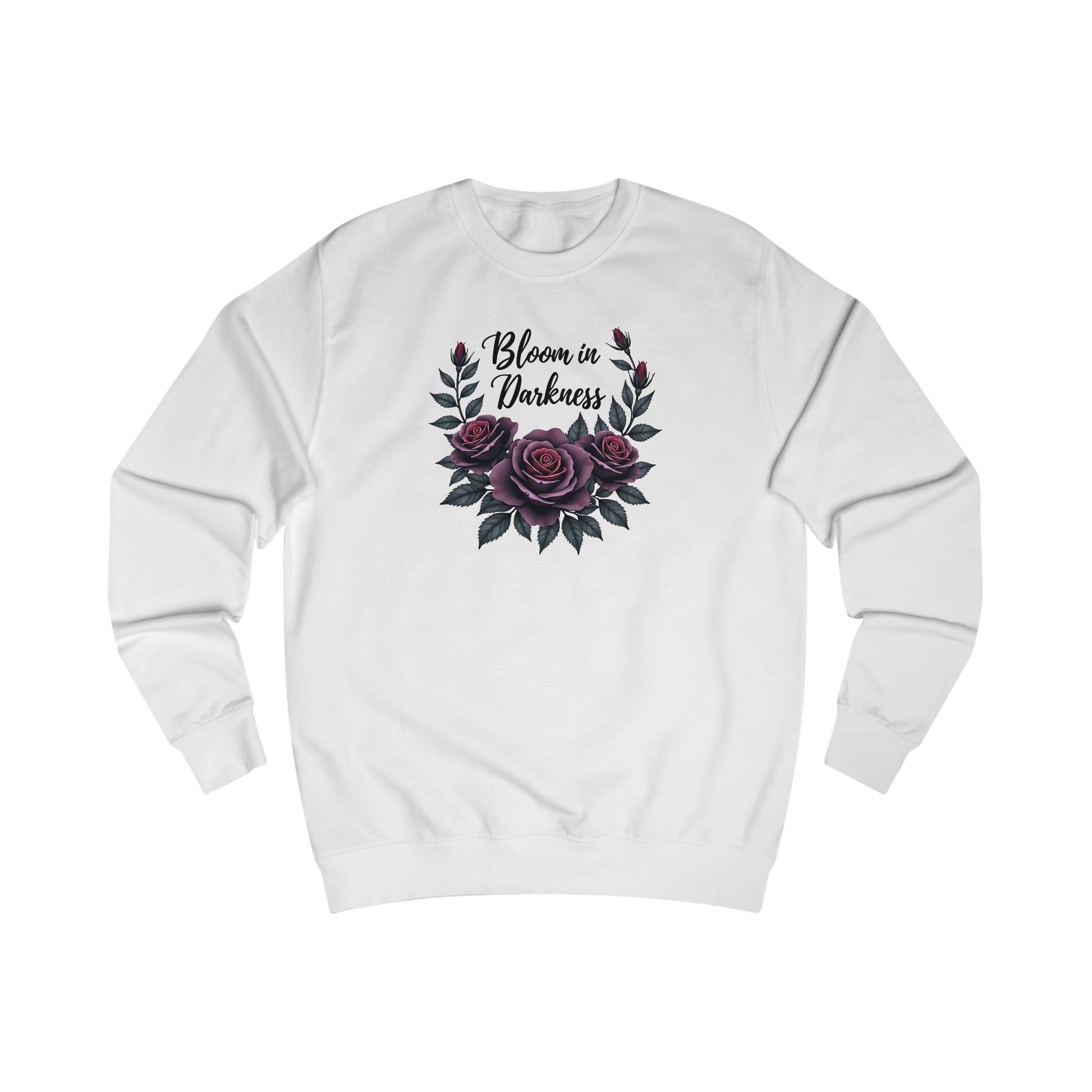 Bloom in Darkness Sweatshirt — Gothic Floral Rose Crewneck