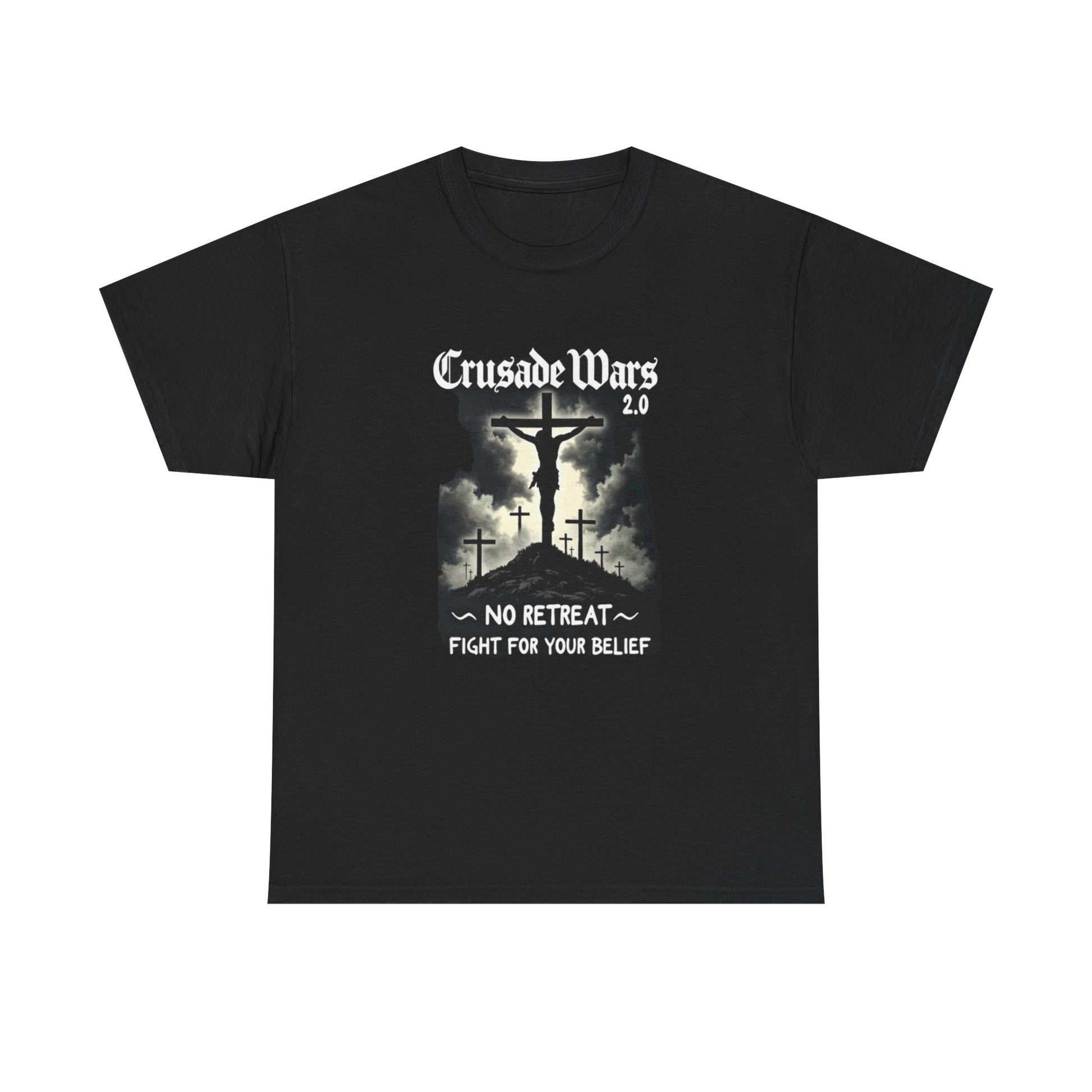 Crusade Wars Tee — "No Retreat — Fight For Your Belief" Religious Graphic T-Shirt