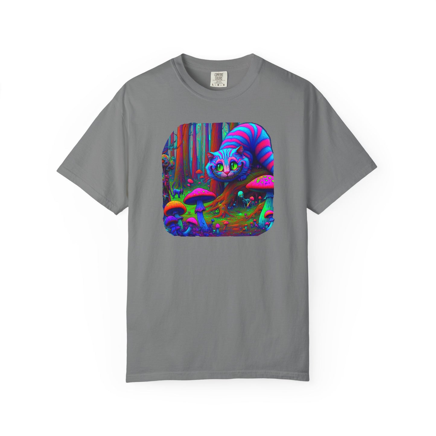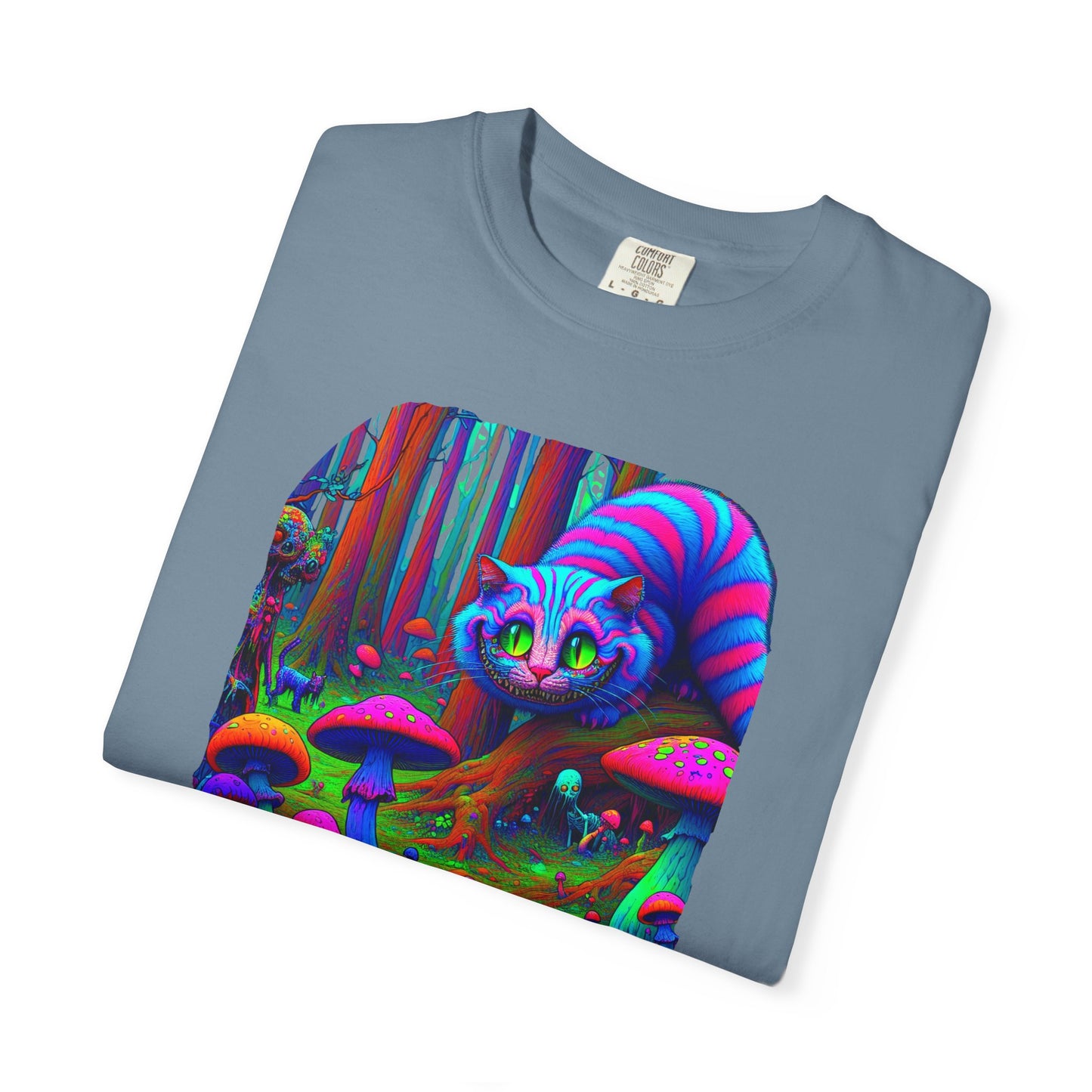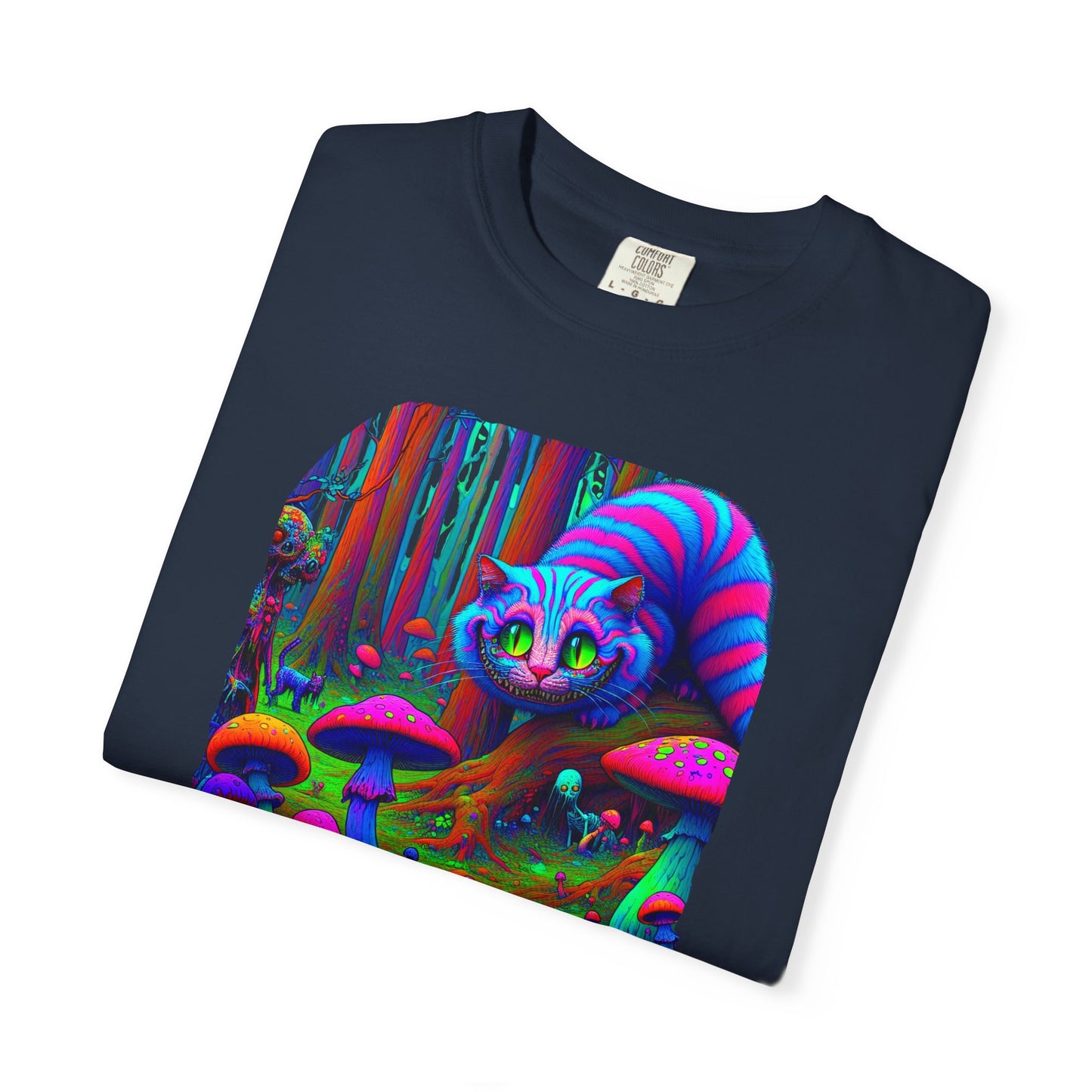 Curious Cat with mushrooms, Unisex Garment-Dyed T-shirt