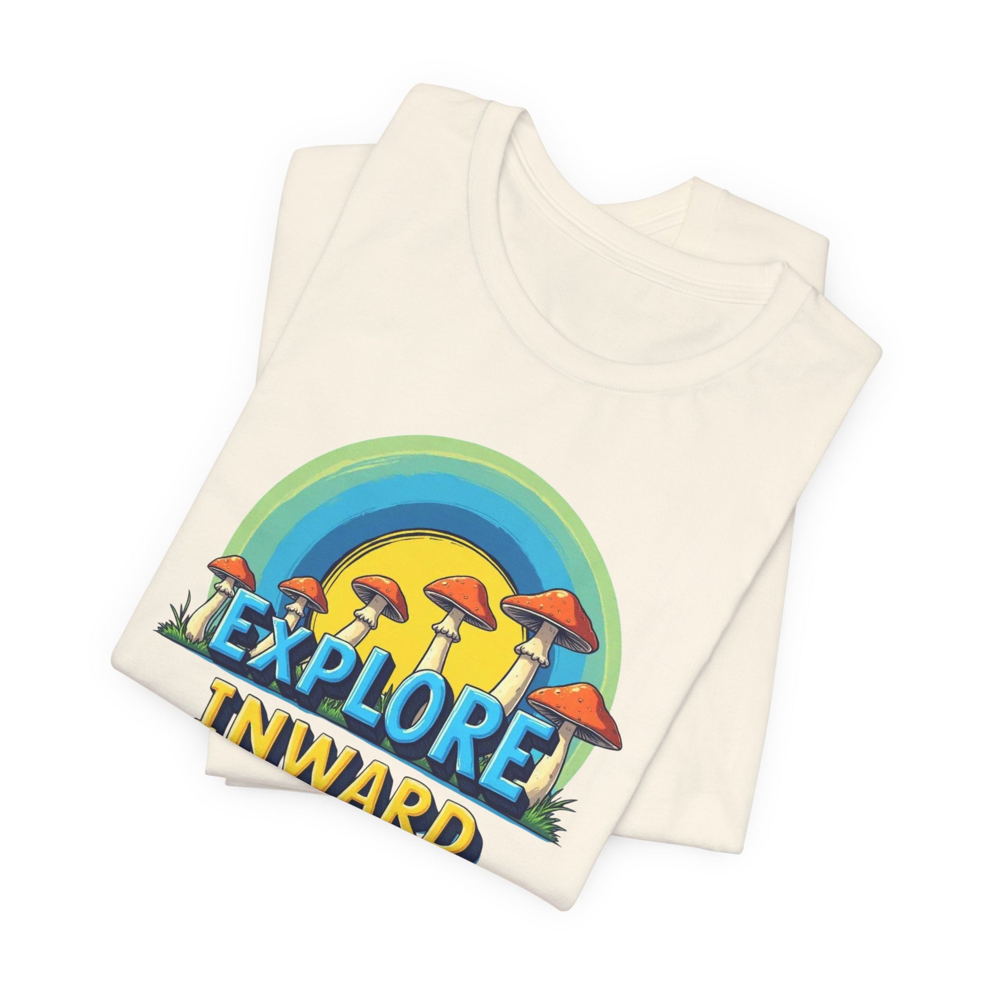 Explore Inward T-Shirt — Retro Mushroom Rainbow Graphic Tee