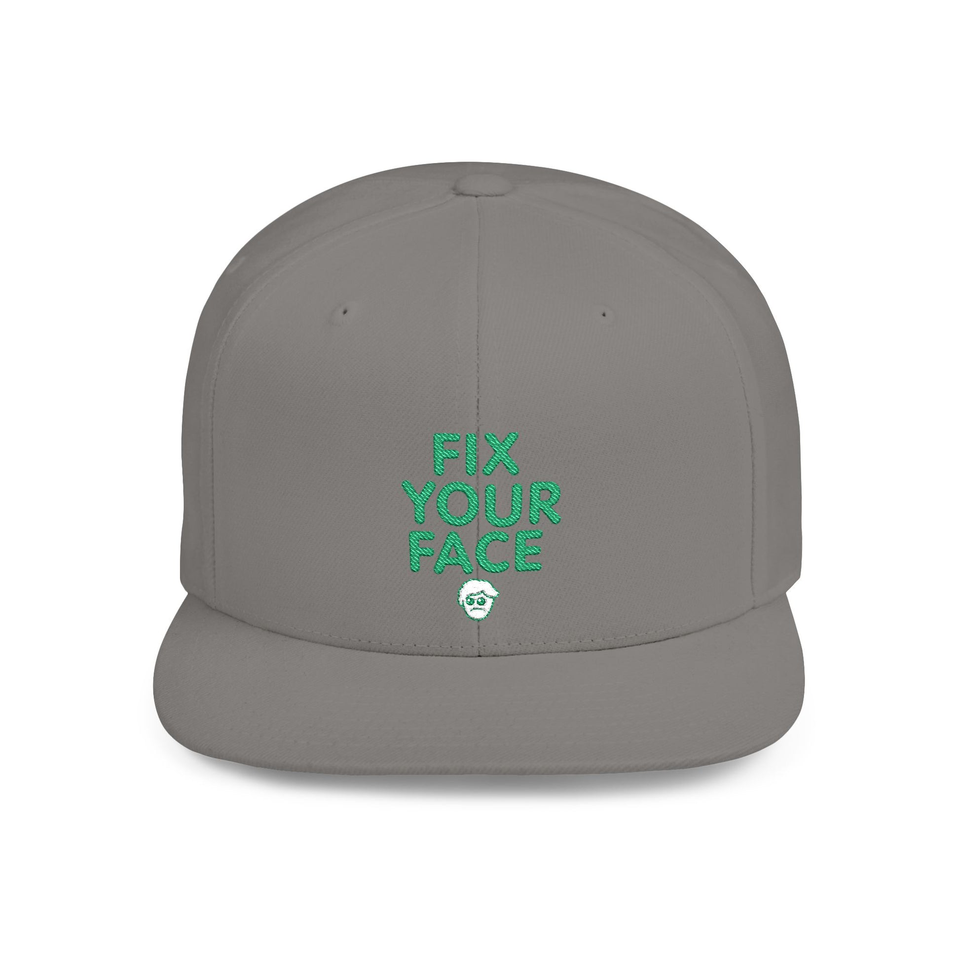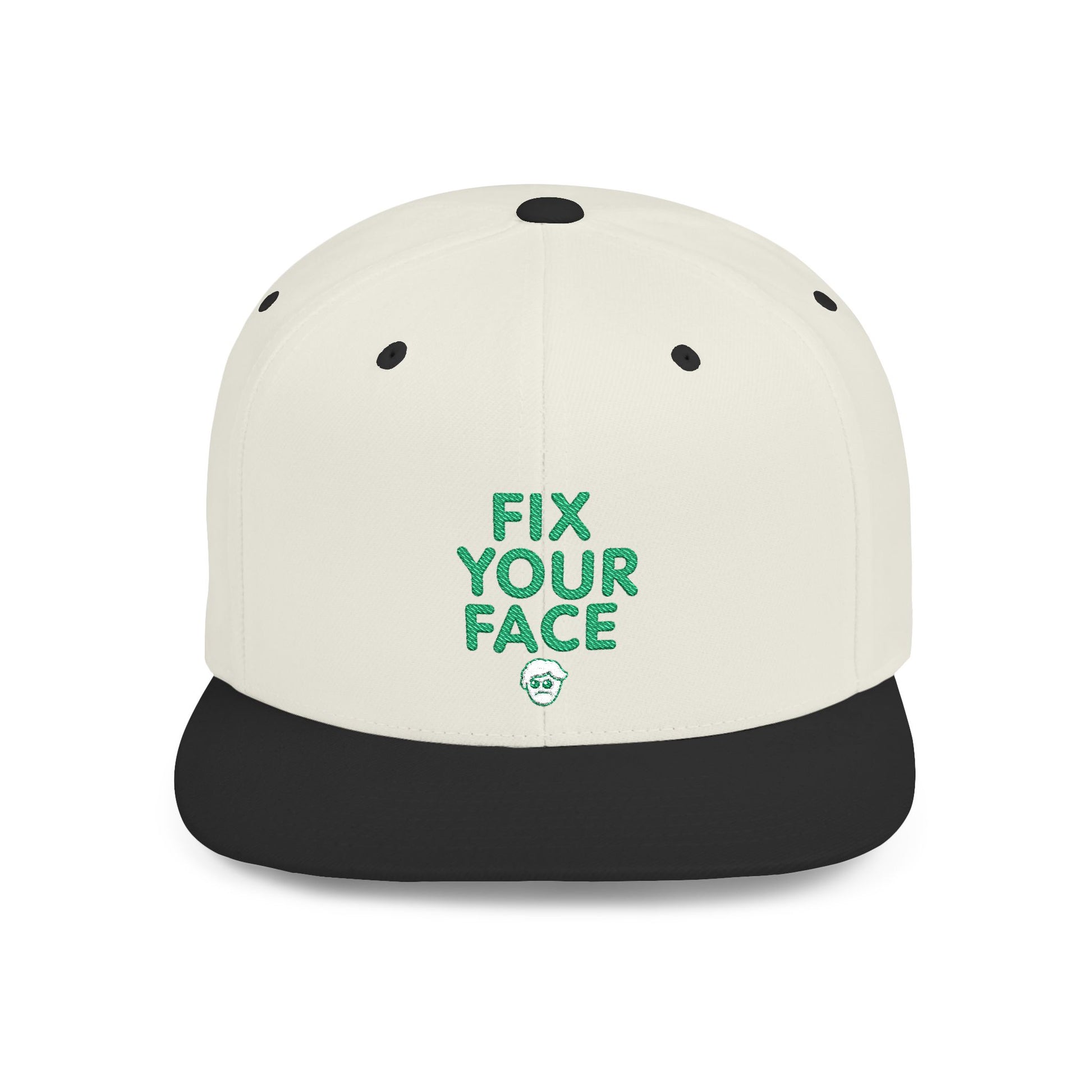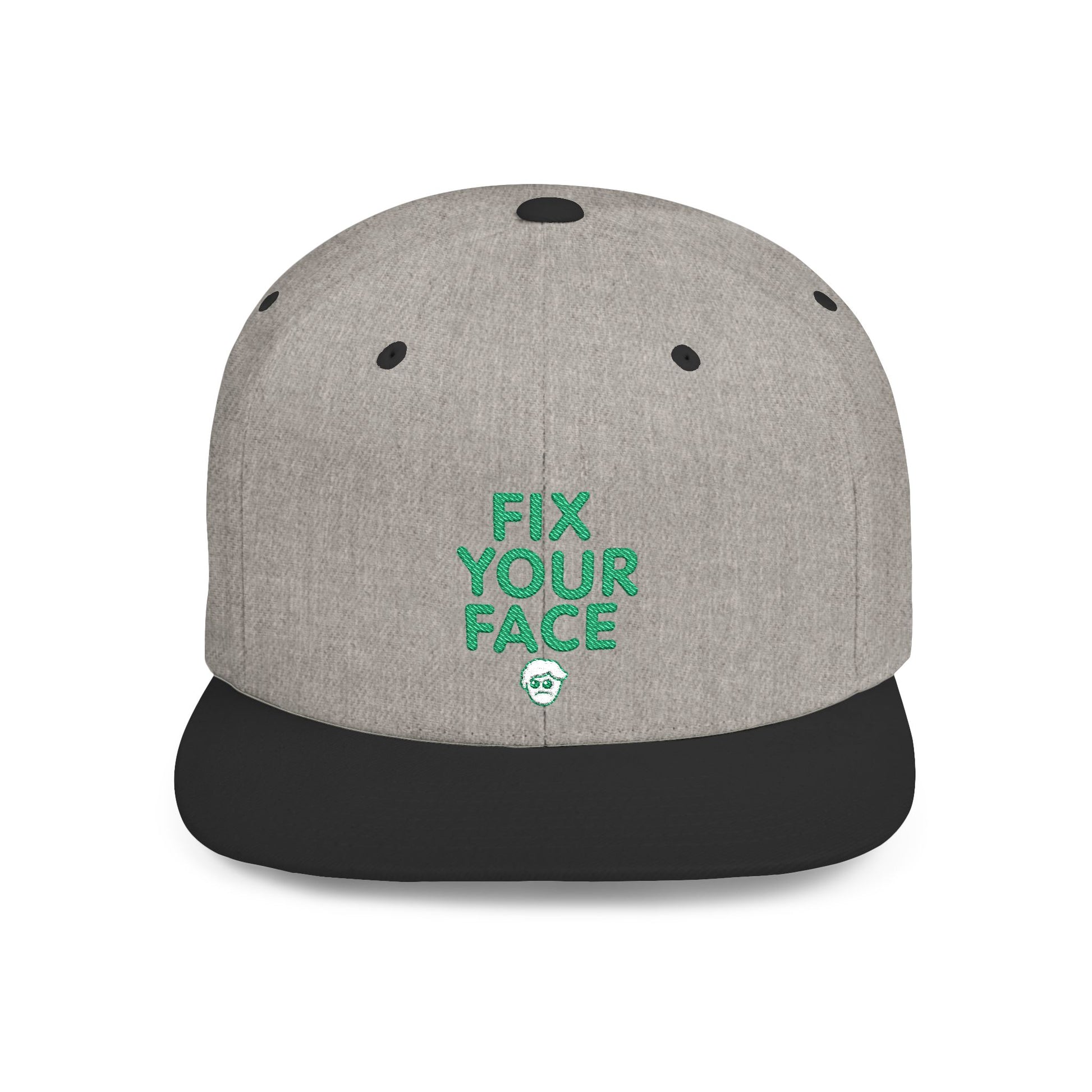 Fix Your Face-Leah, Flat Bill Snapback Cap, Trendy Snapback Hat, Funny Quote Hat, Casual Streetwear Cap, Unique Gift for Friends