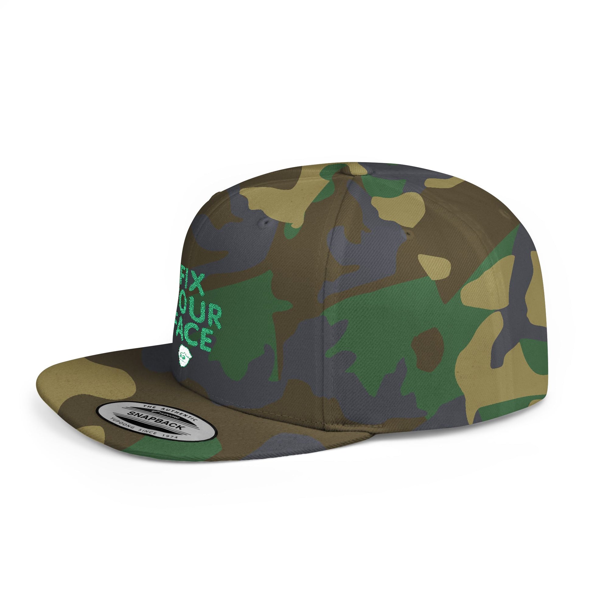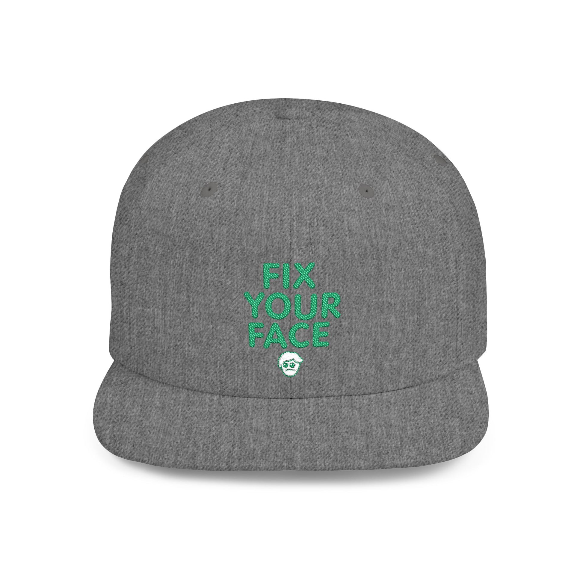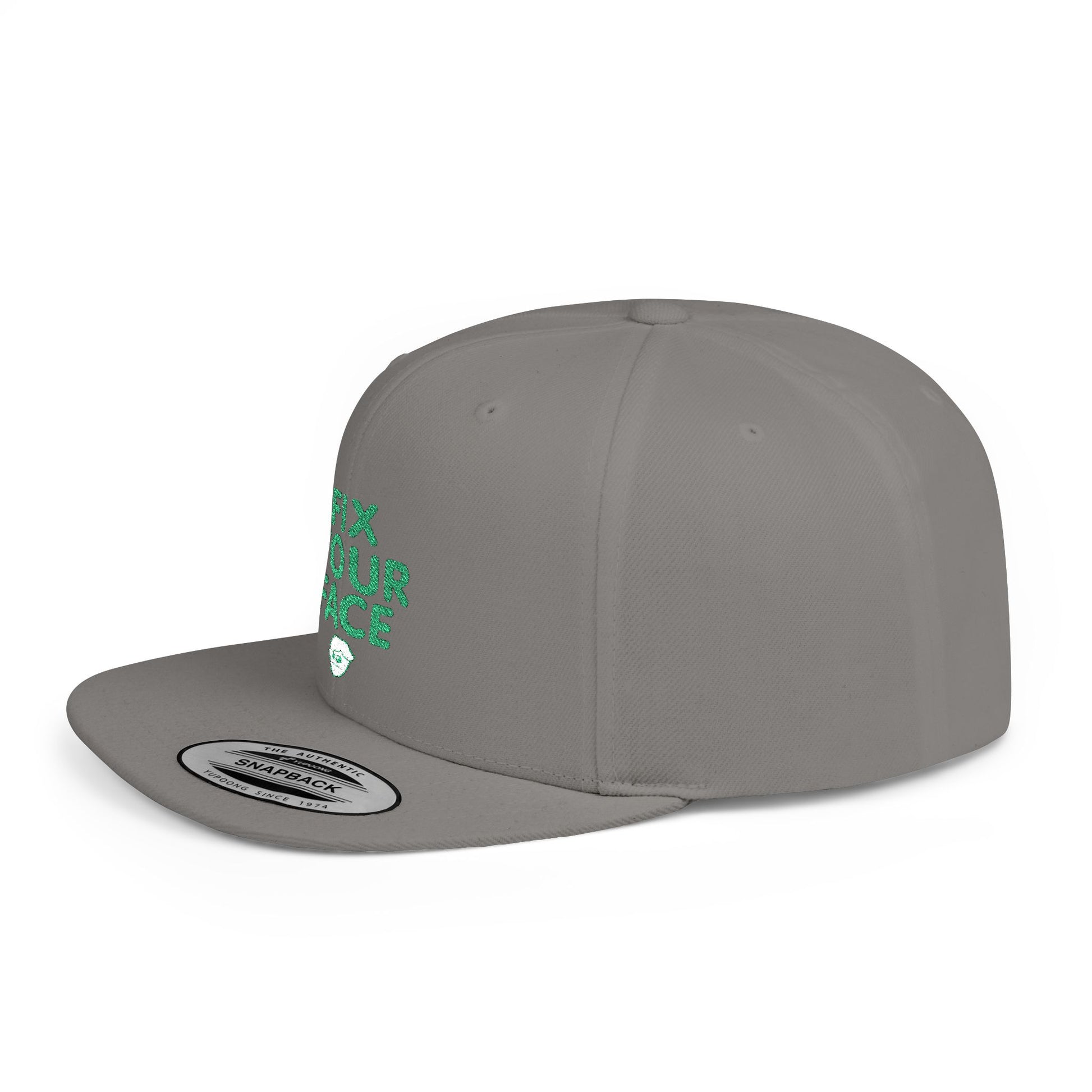 Fix Your Face-Leah, Flat Bill Snapback Cap, Trendy Snapback Hat, Funny Quote Hat, Casual Streetwear Cap, Unique Gift for Friends