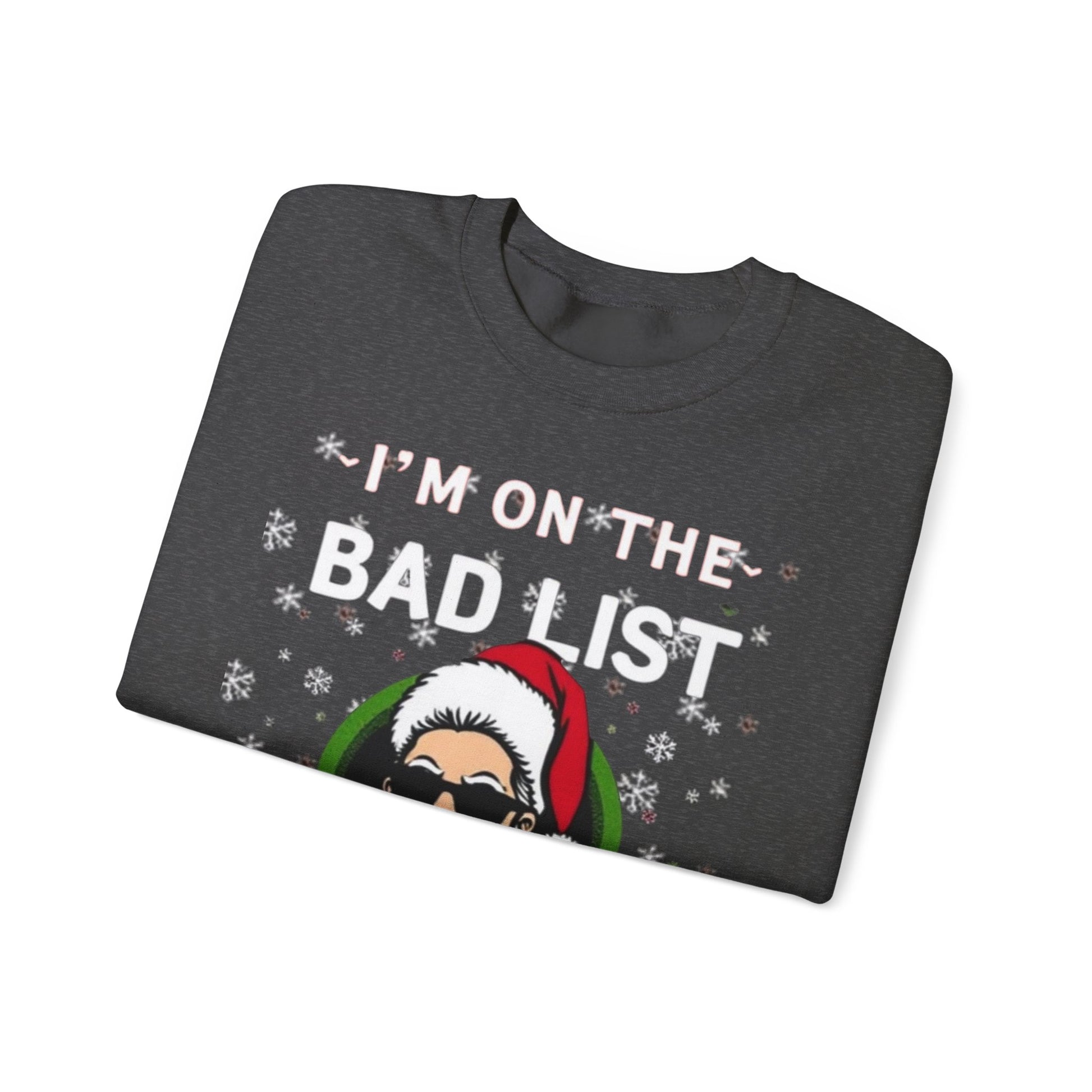 Funny Christmas Sweatshirt - "I'm On The Bad List and I Regret Nothing" Santa Crewneck