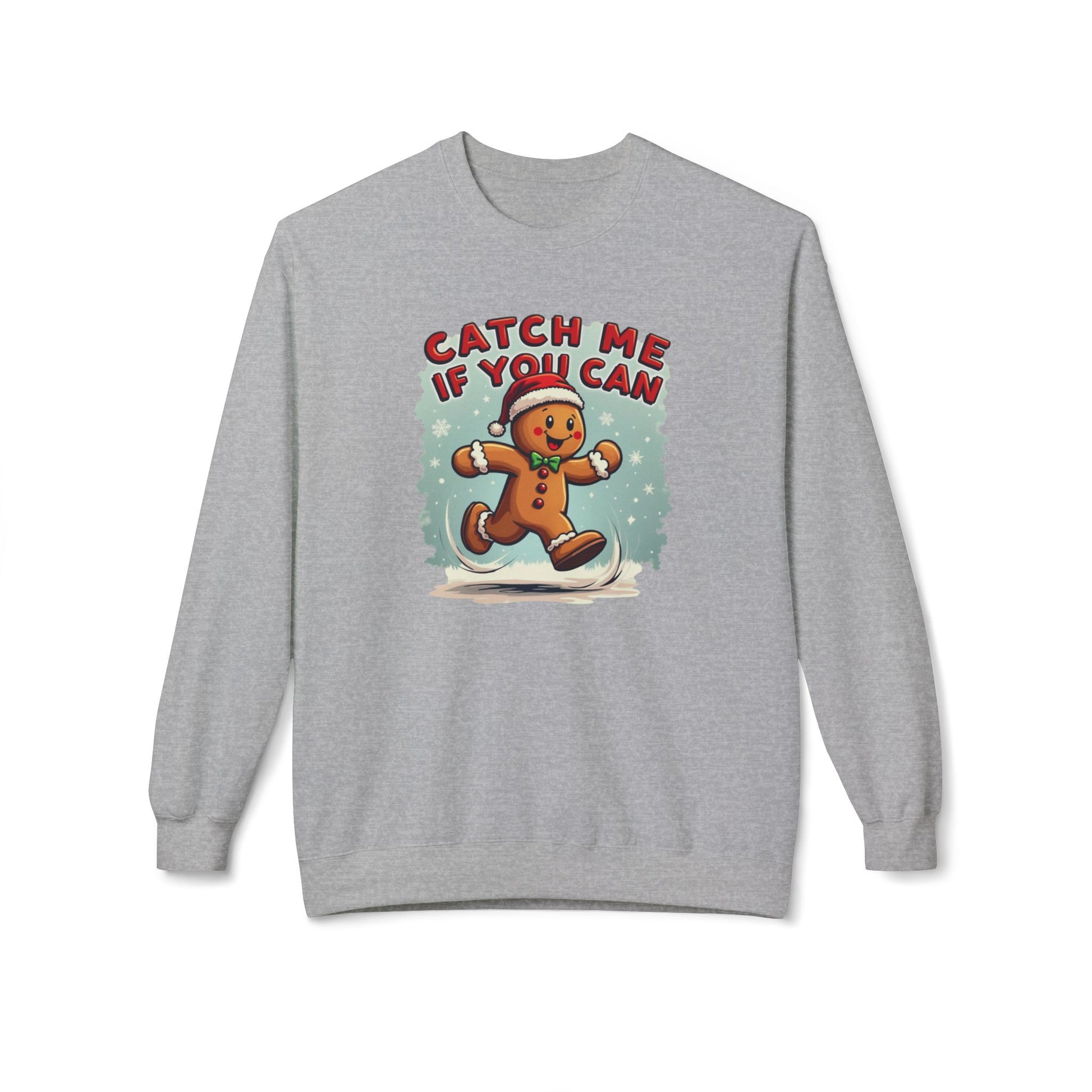 A cozy midweight crewneck printed with a playful vintage-style gingerbread running through falling snow. The warm, soft fabric and relaxed dropped-shoulder cut make this sweatshirt feel like a wearable hug on crisp mornings. The whimsical “Catch Me If You Can” artwork adds a lighthearted, nostalgic twist—great for quiet winter walks, baking days, or low-key holiday gatherings where comfort and charm matter more than fuss. It layers easily over tees and under coats, becoming an everyday go-to when you want a bit of seasonal cheer without shouting for attention.
