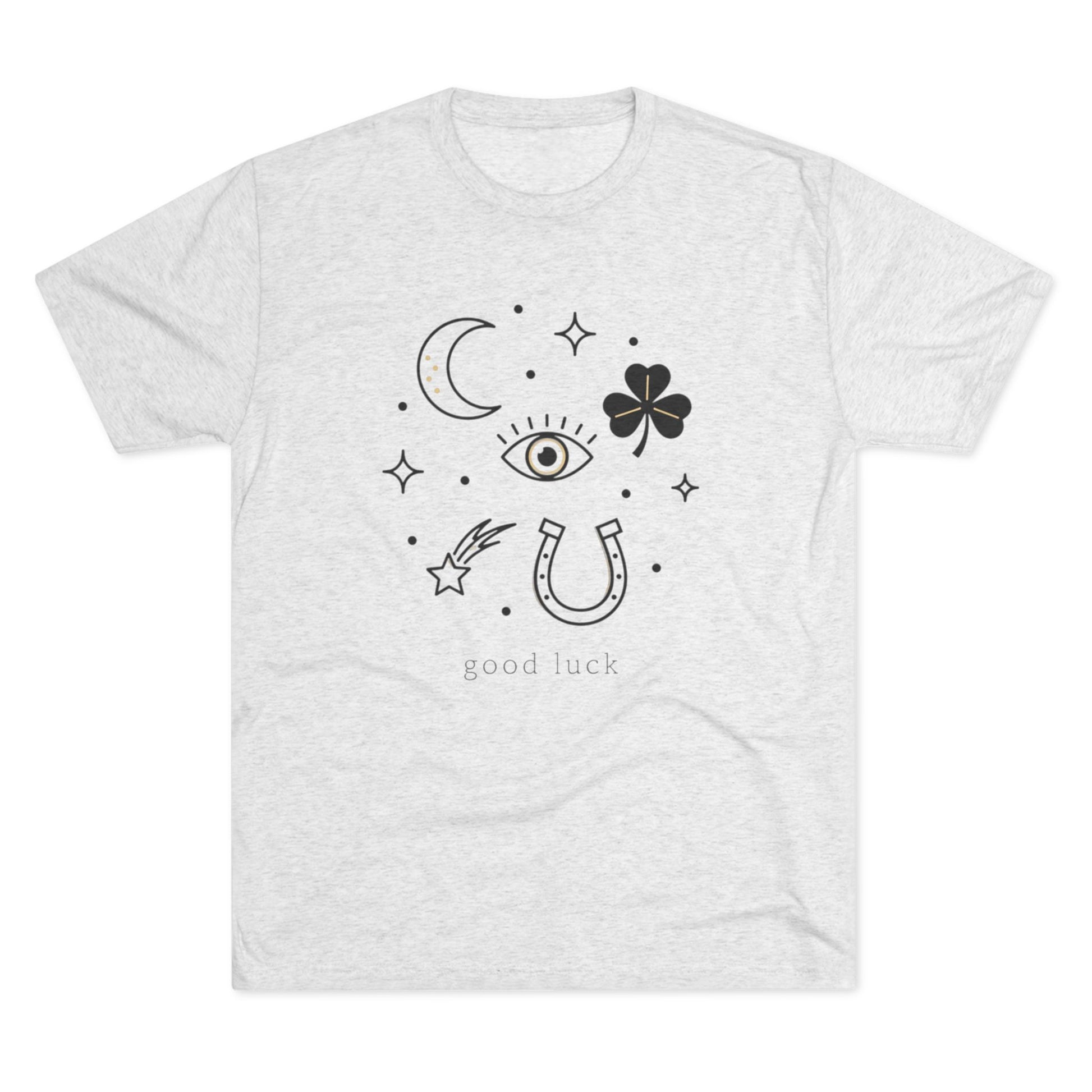 Good Luck Symbols Tee — Minimal Mystic Crescent, Eye, Horseshoe & Clover Graphic Shirt