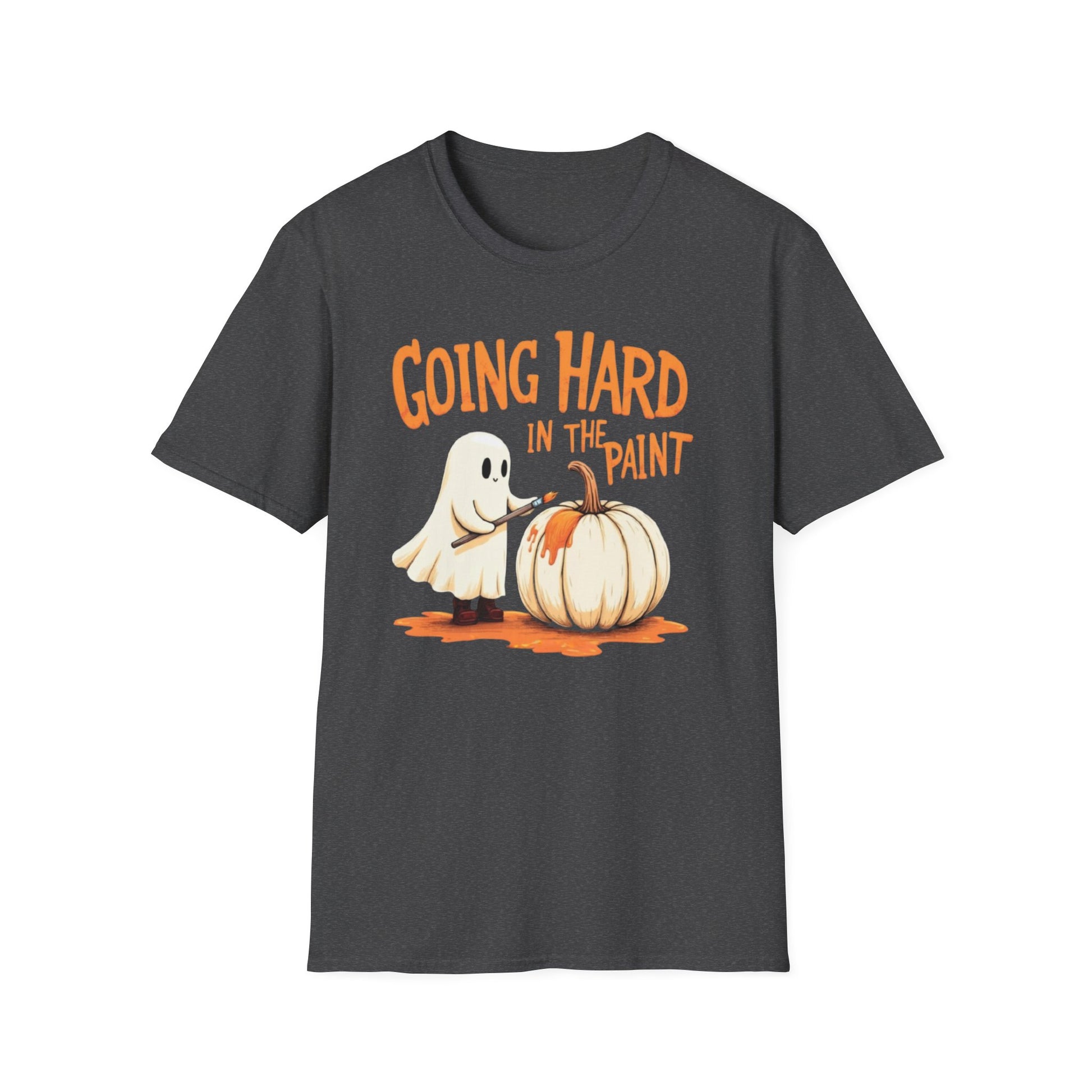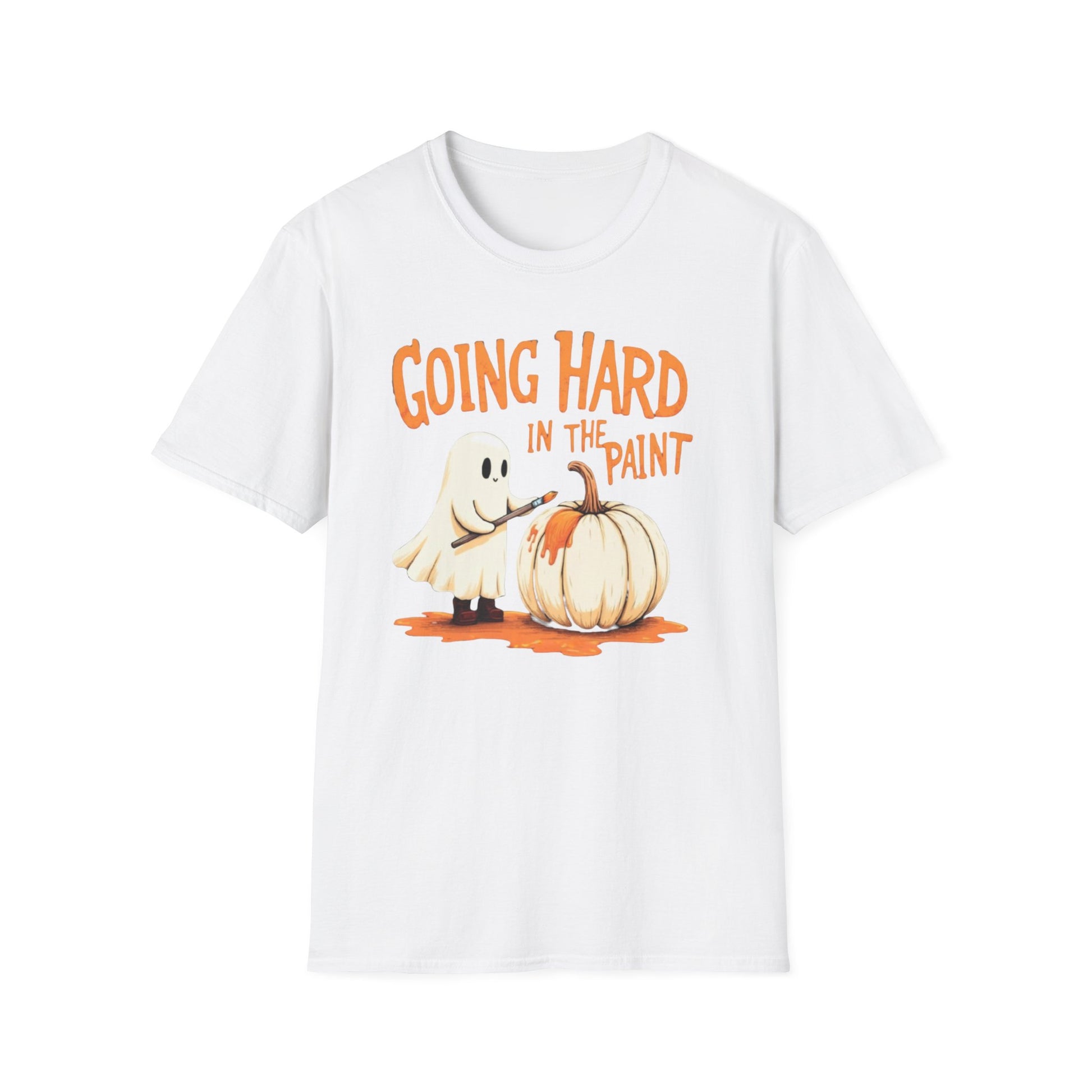 Halloween Ghost painting, T-Shirt, Fun Halloween Shirt, Unisex Softstyle Tee, Autumn Apparel, Pumpkin Design Tee