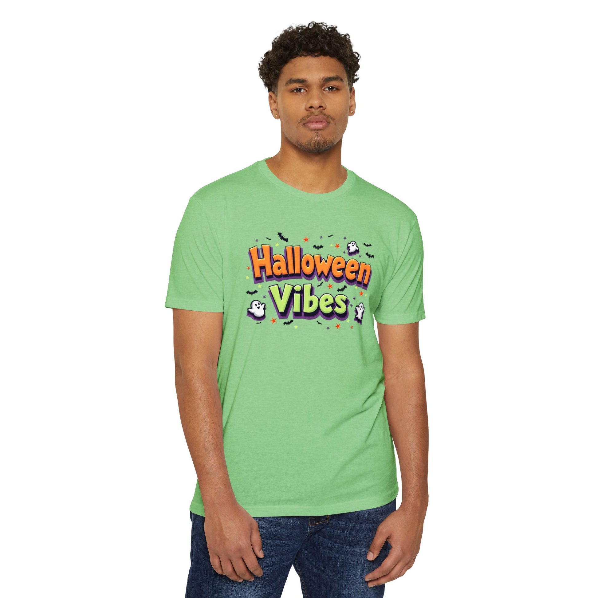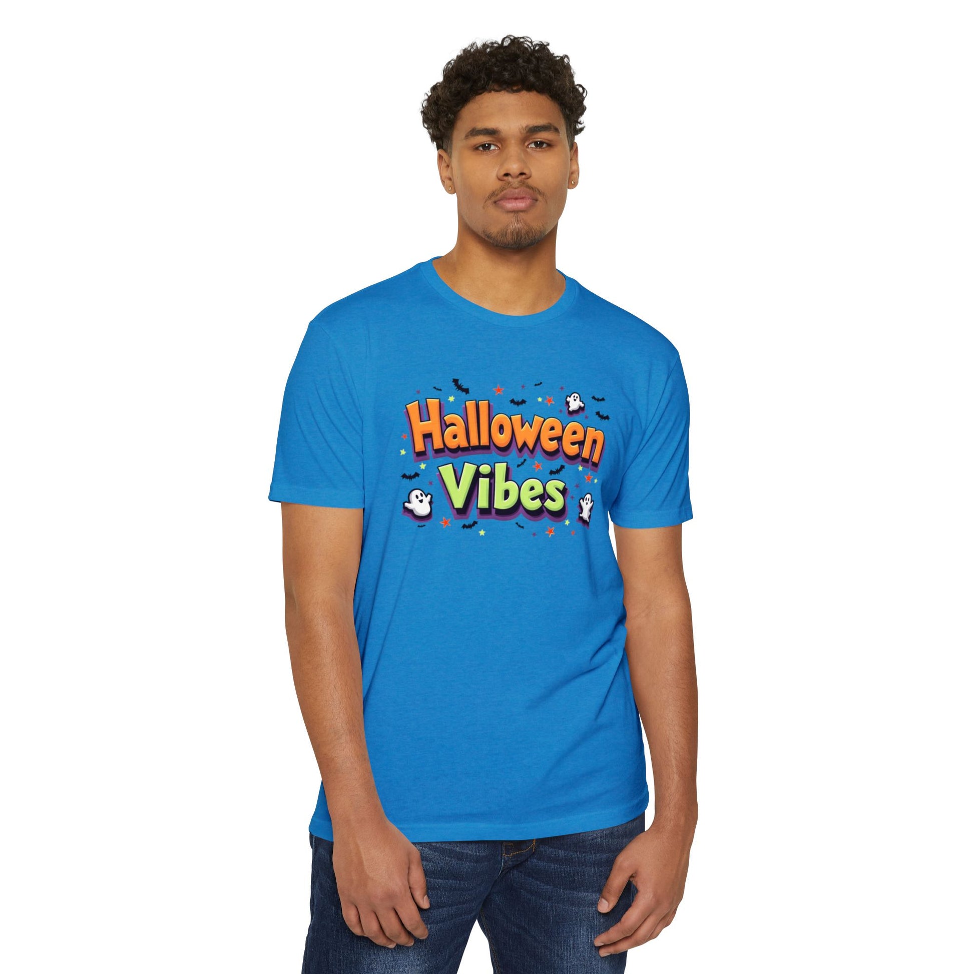 Embrace the spirit of Halloween with this vibrant Unisex CVC Jersey T-shirt. Featuring a playful design that radiates fun and festivities, this tee is perfect for anyone looking to add some whimsy to their fall wardrobe. Its classic fit ensures comfort for all-day wear, whether you're at a Halloween party, trick-or-treating, or simply enjoying seasonal outings. Ideal for both kids and adults, this shirt captures the joy of the spooky season and makes a great gift for friends and family. Perfect for Halloween celebrations, costume events, or as a unique addition to your autumn wardrobe.