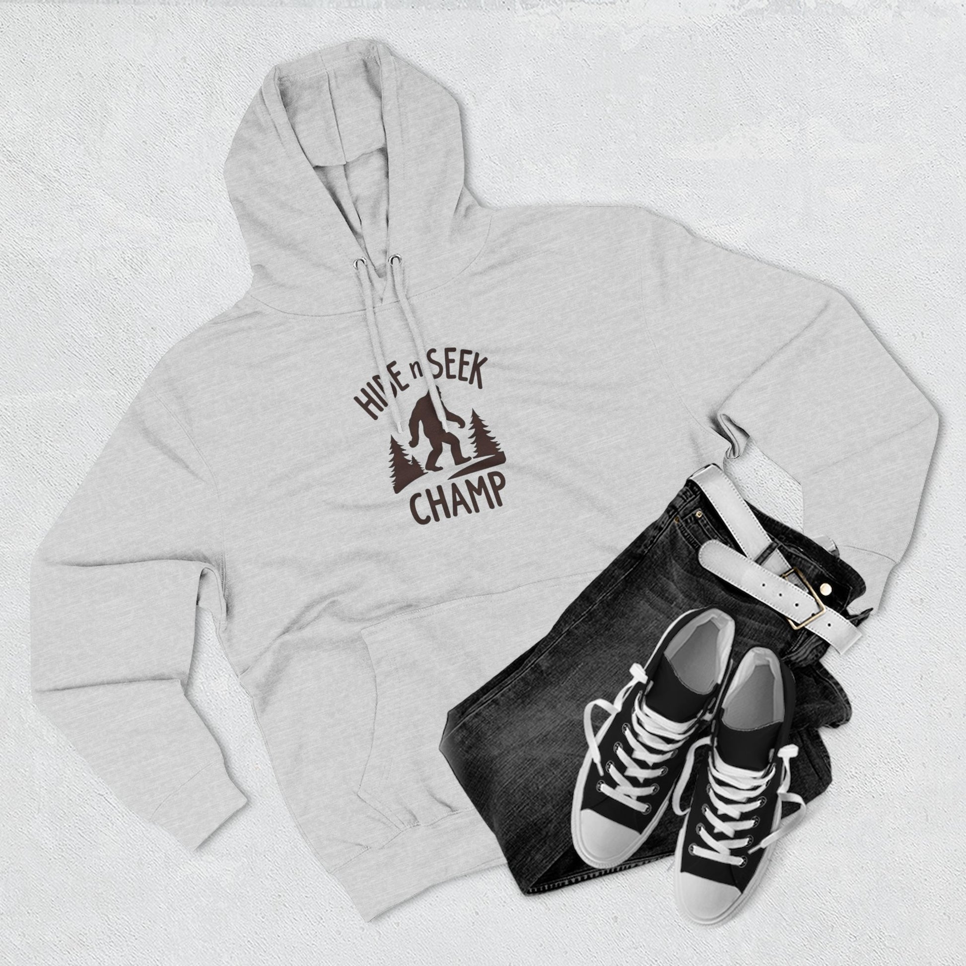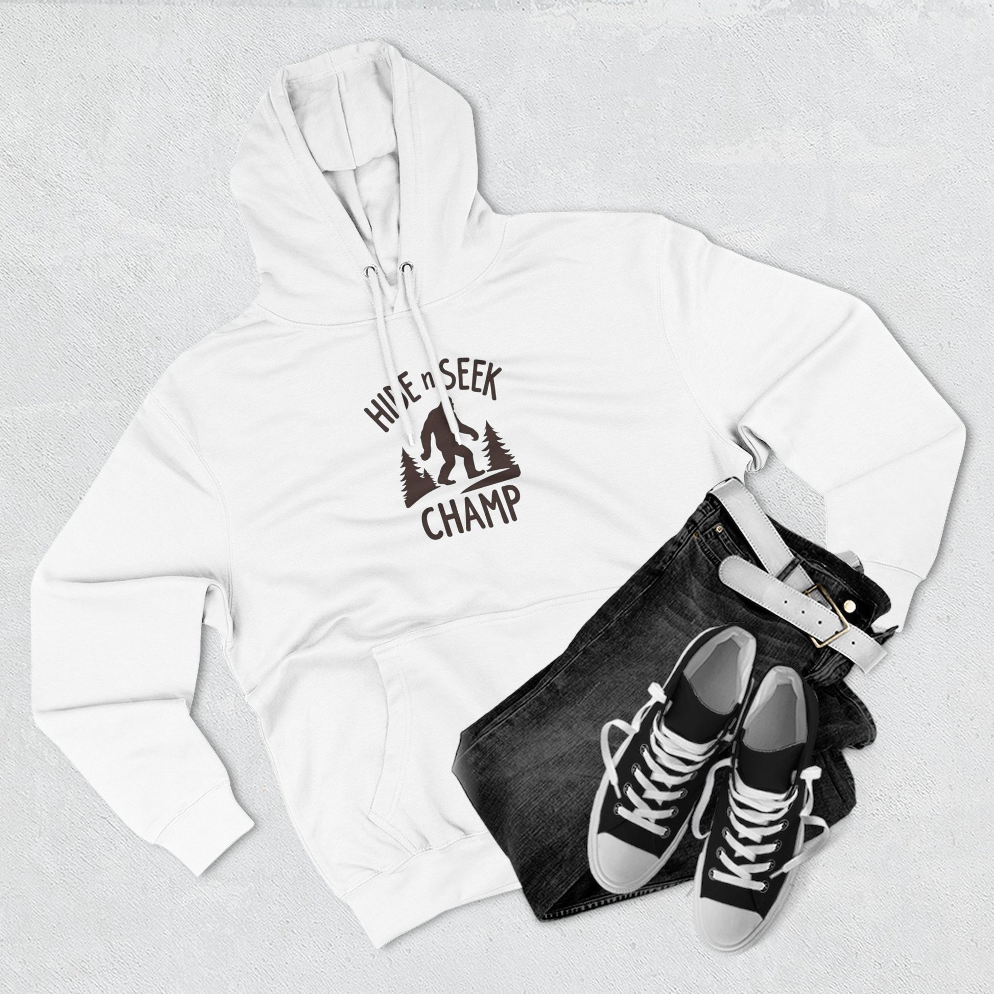 Hide & Seek Champ Hoodie — Bigfoot Sasquatch Graphic Pullover