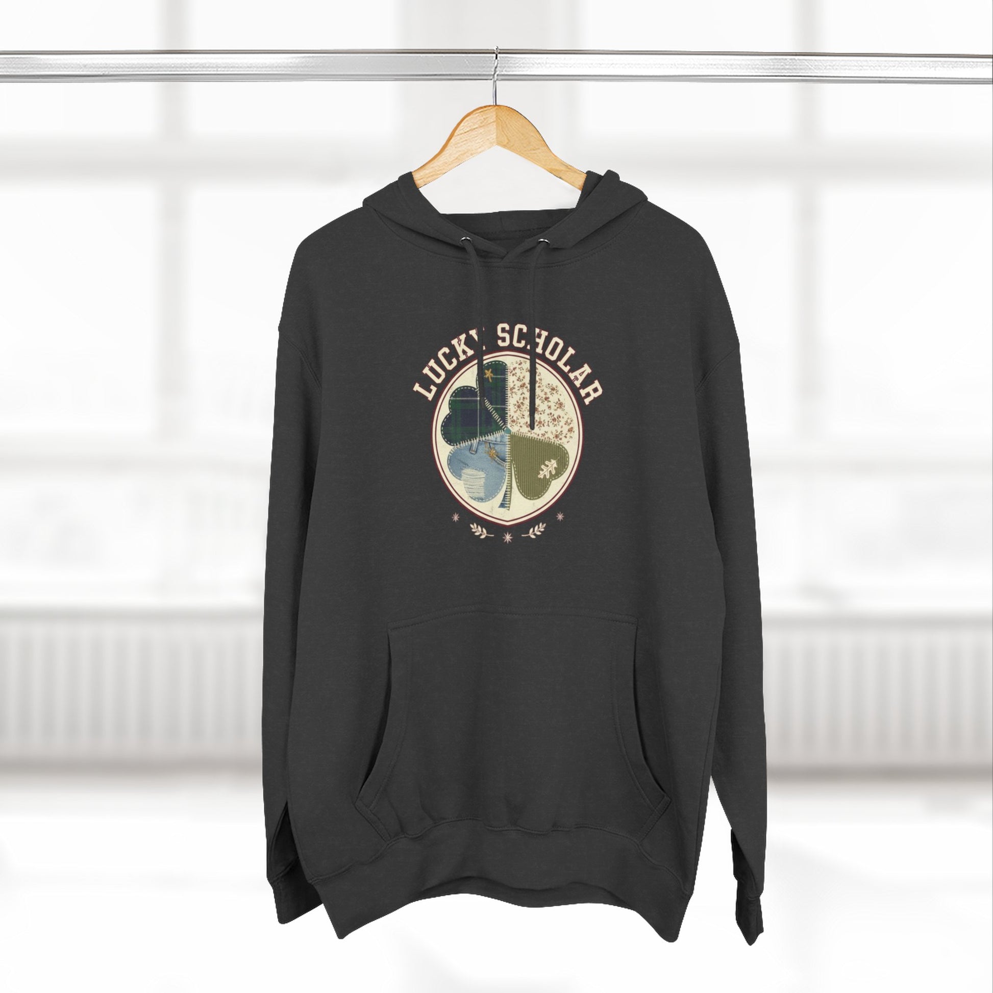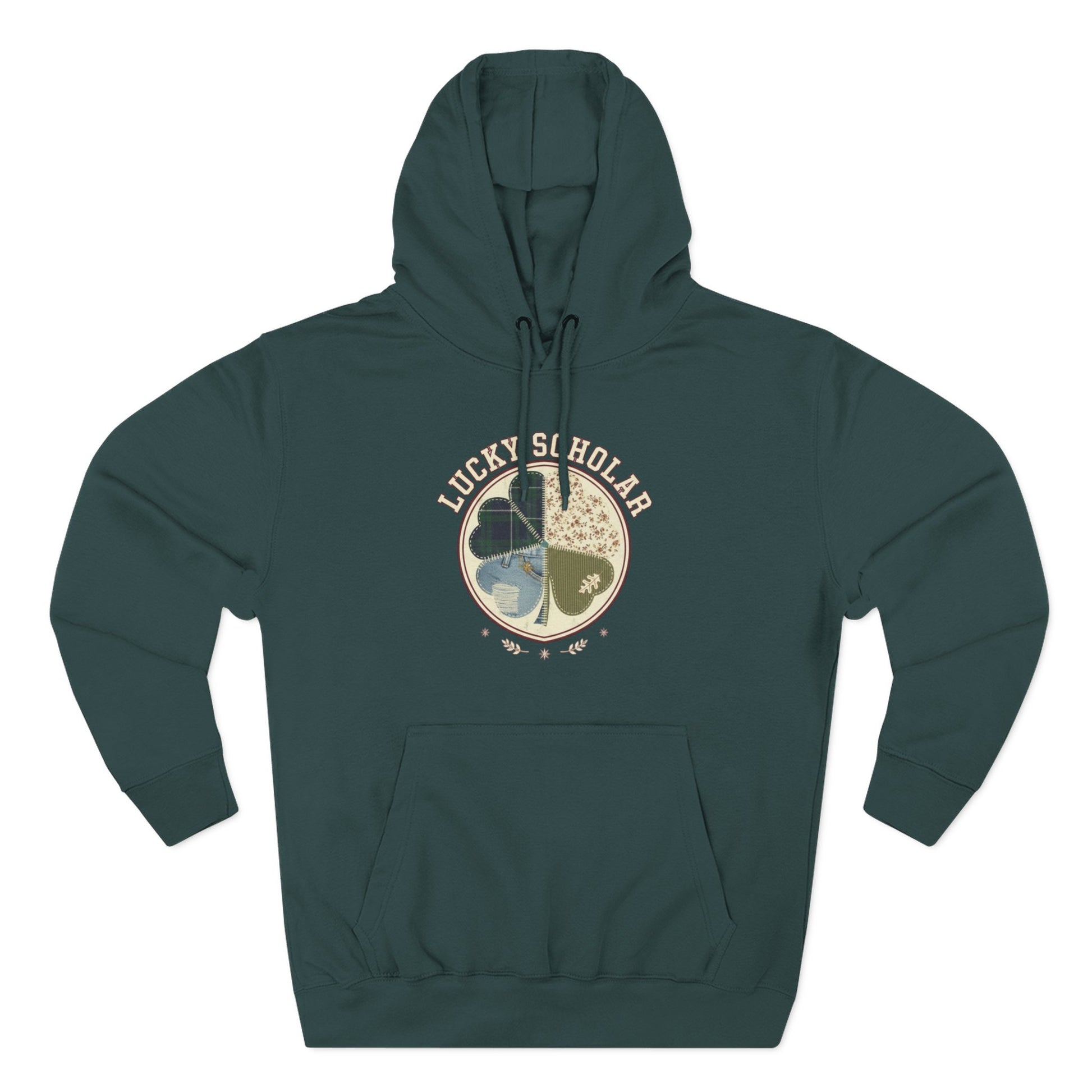 Lucky Scholar Clover, Three-Panel Fleece Hoodie