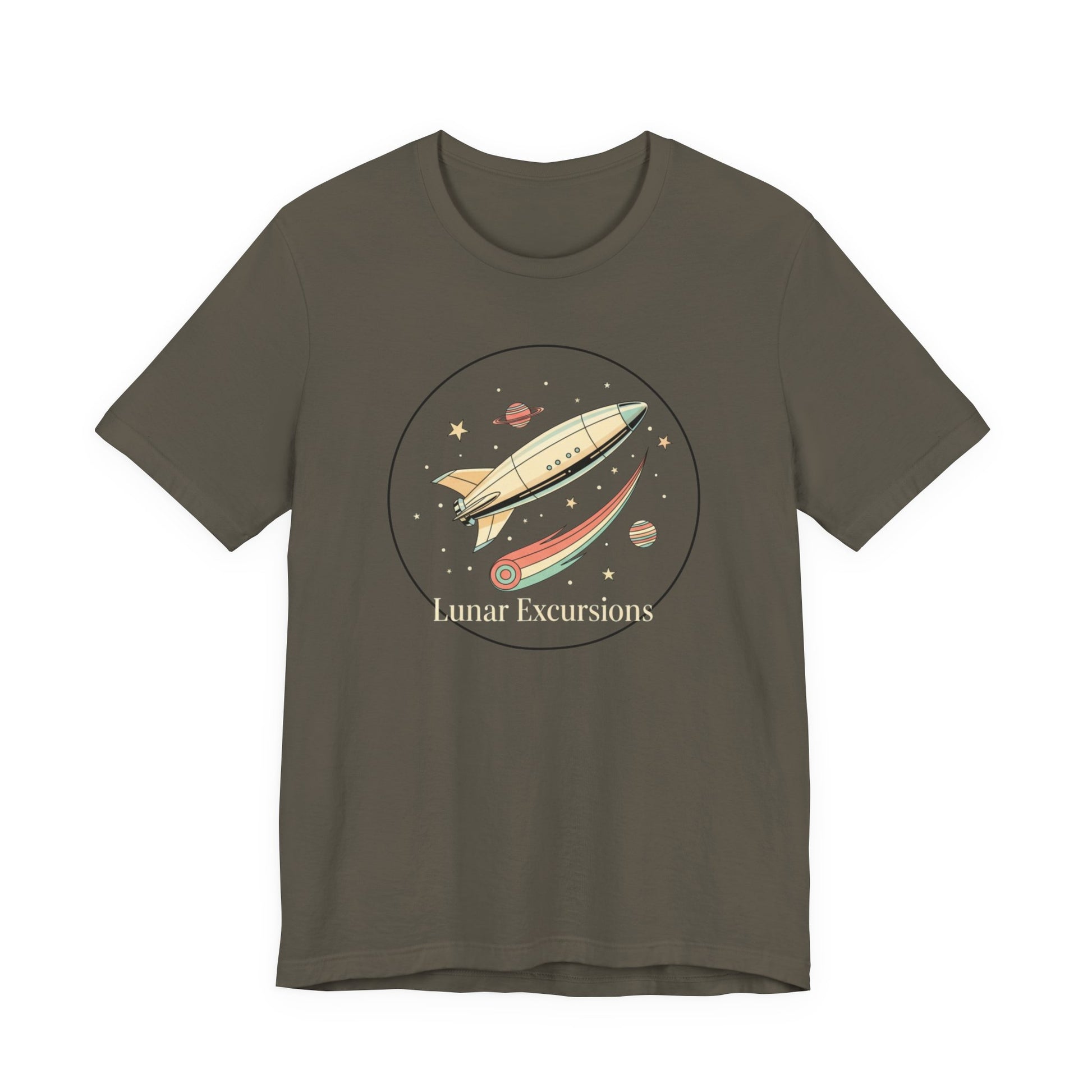 Lunar Excursion Rocket T‑Shirt — Retro Space Graphic Tee