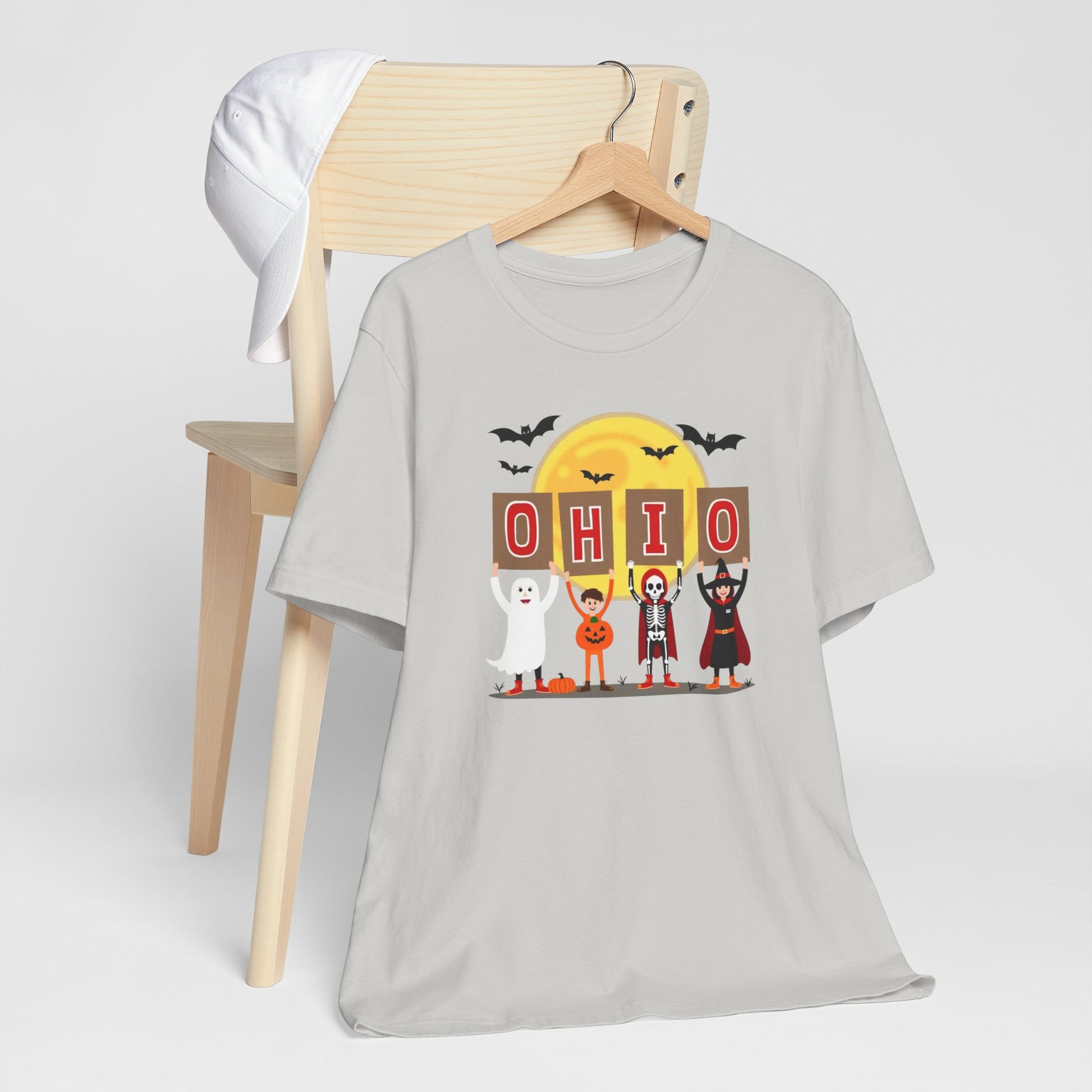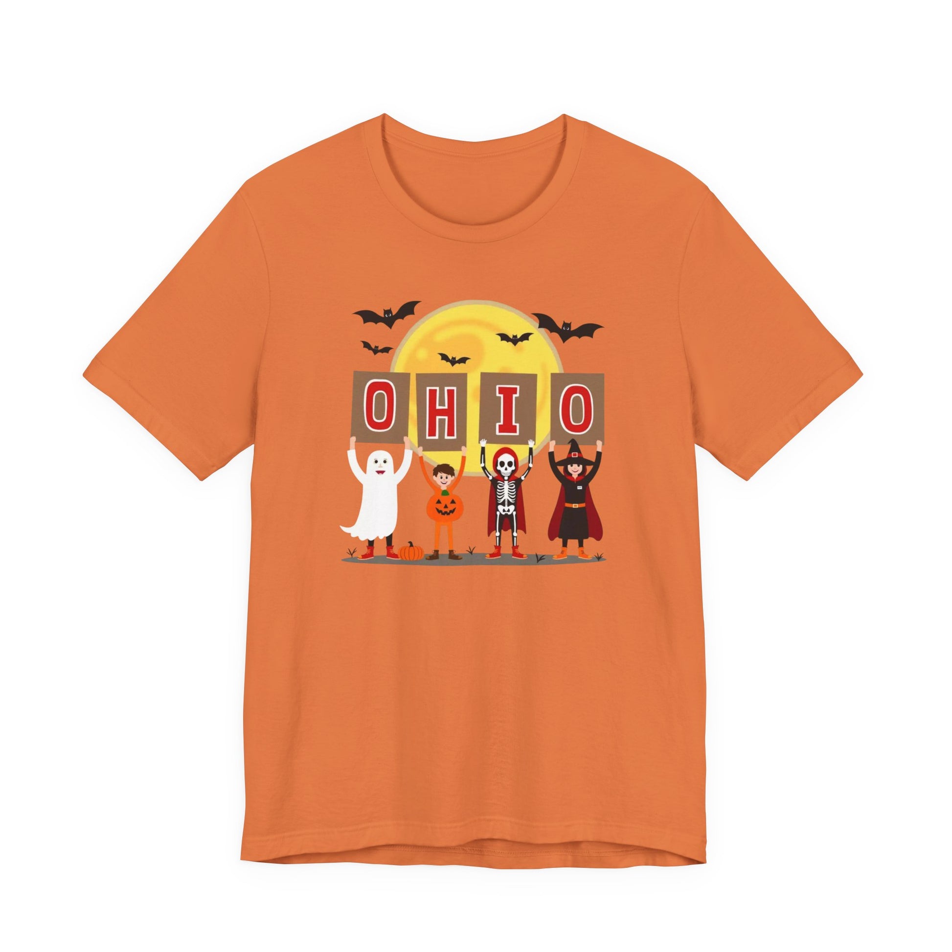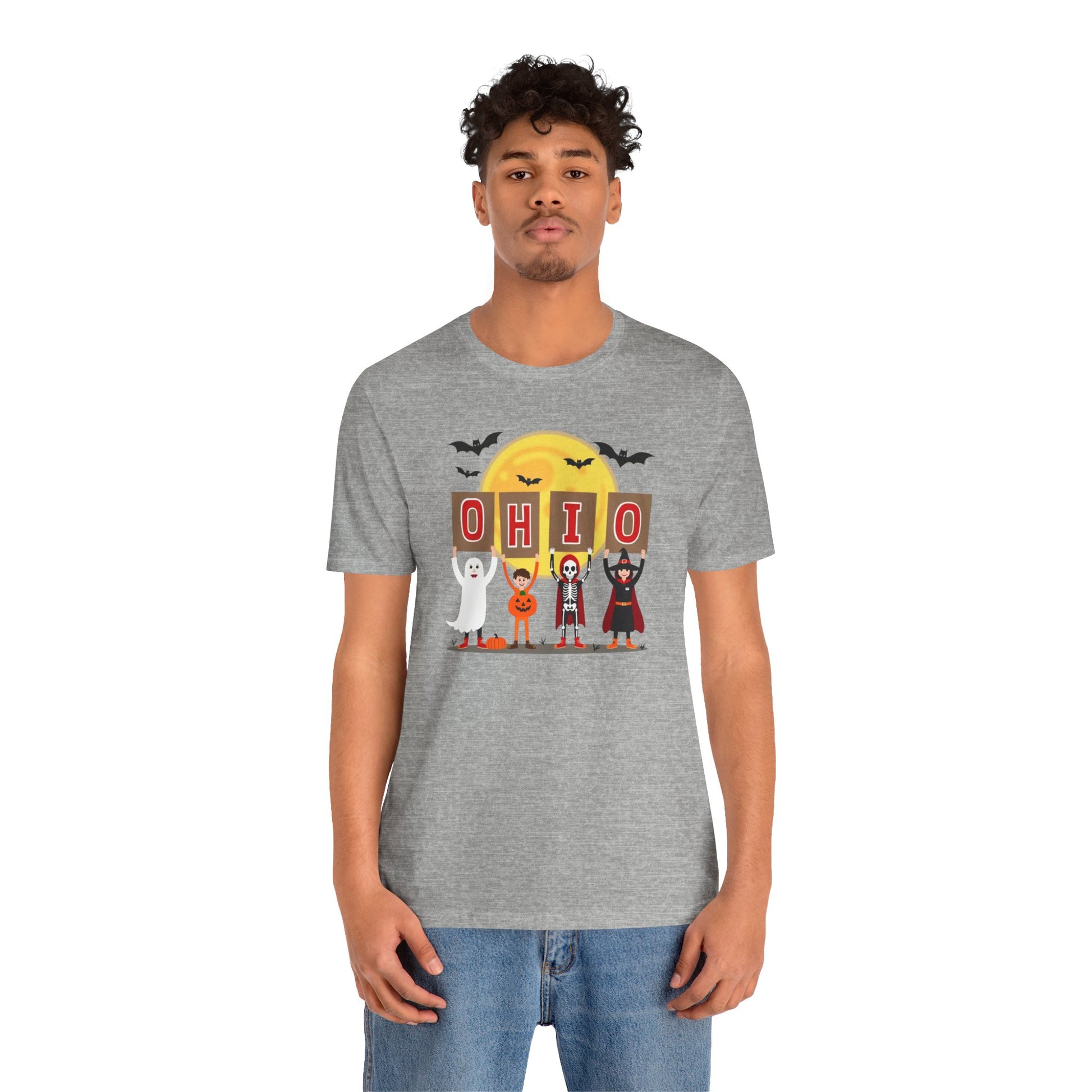 Celebrate your love for Halloween and Ohio with this Unisex Jersey Short Sleeve Tee! Designed for comfort and style, this tee features a playful graphic that brings a fun vibe to any casual outfit. Perfect for trick-or-treating, Halloween parties, or just lounging around, this shirt fits seamlessly into your autumn wardrobe. Whether you're a local or a fan of the Buckeye State, this tee is a conversation starter! Ideal for anyone who enjoys festive celebrations, it's great for giving as a gift during holidays or simply treating yourself.