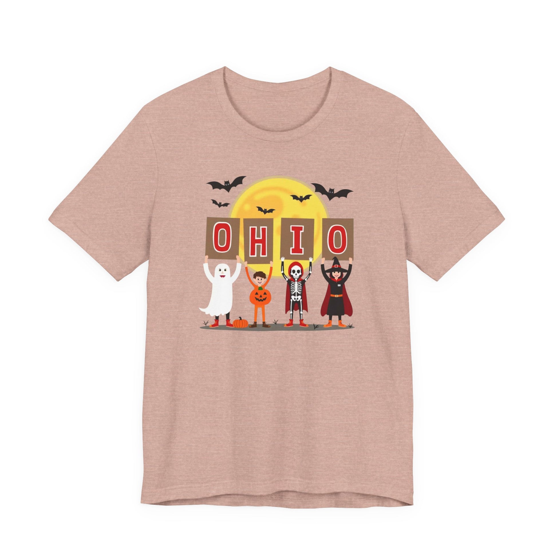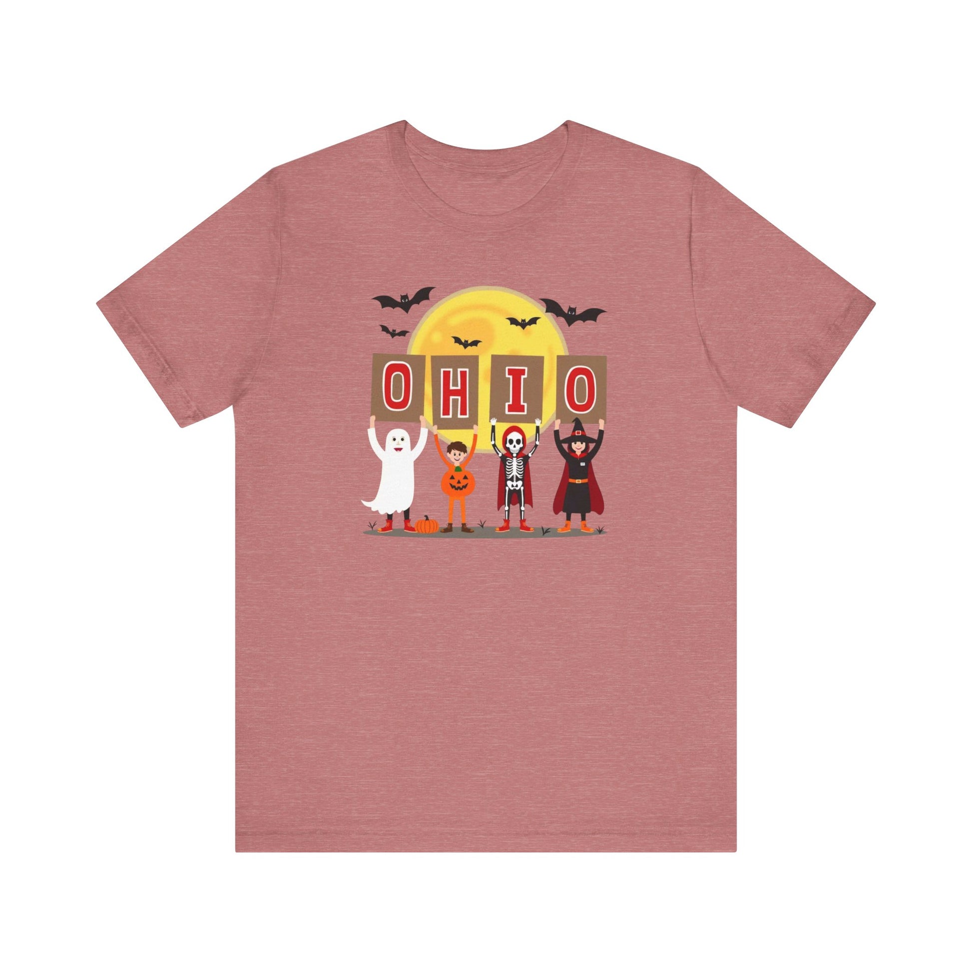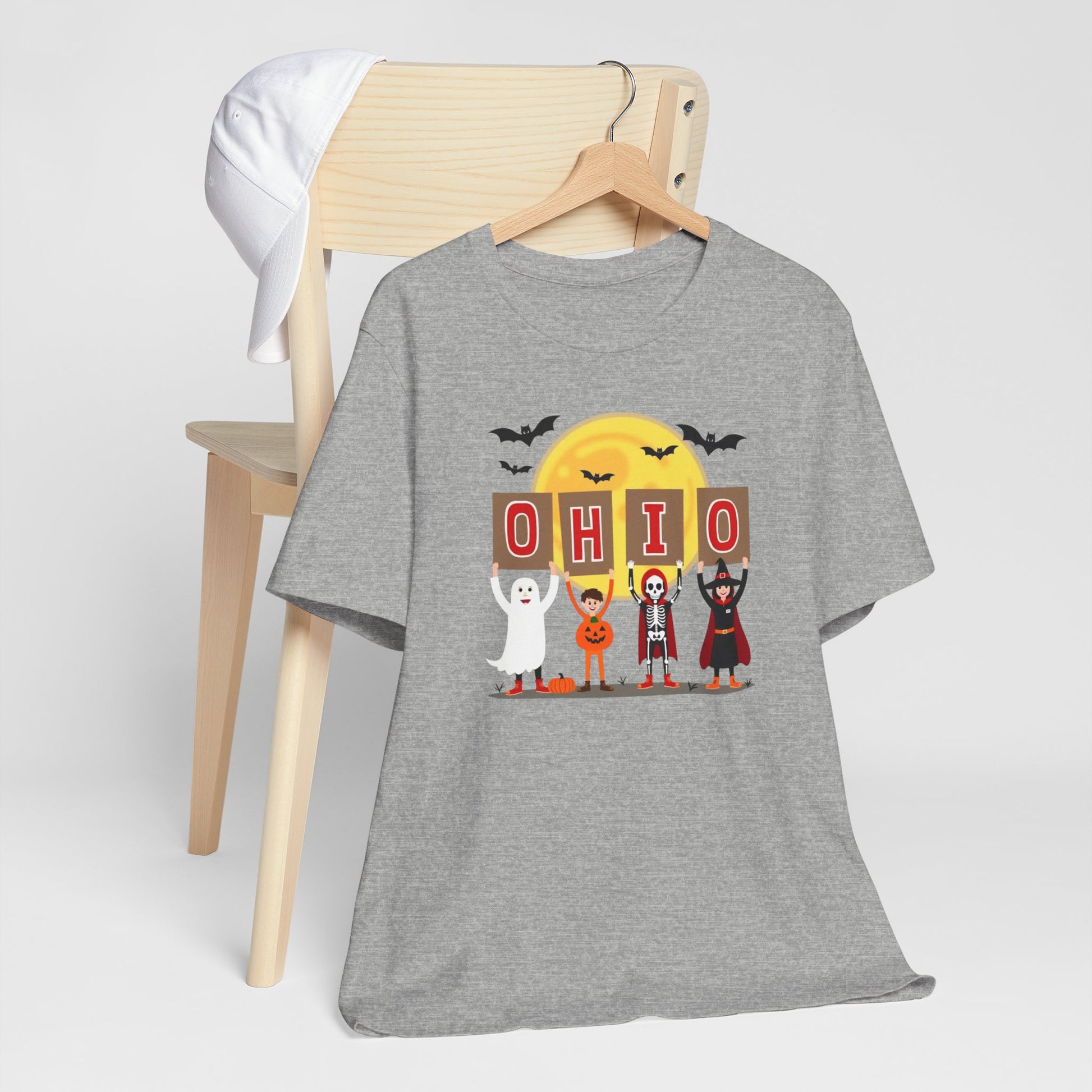 Celebrate your love for Halloween and Ohio with this Unisex Jersey Short Sleeve Tee! Designed for comfort and style, this tee features a playful graphic that brings a fun vibe to any casual outfit. Perfect for trick-or-treating, Halloween parties, or just lounging around, this shirt fits seamlessly into your autumn wardrobe. Whether you're a local or a fan of the Buckeye State, this tee is a conversation starter! Ideal for anyone who enjoys festive celebrations, it's great for giving as a gift during holidays or simply treating yourself.