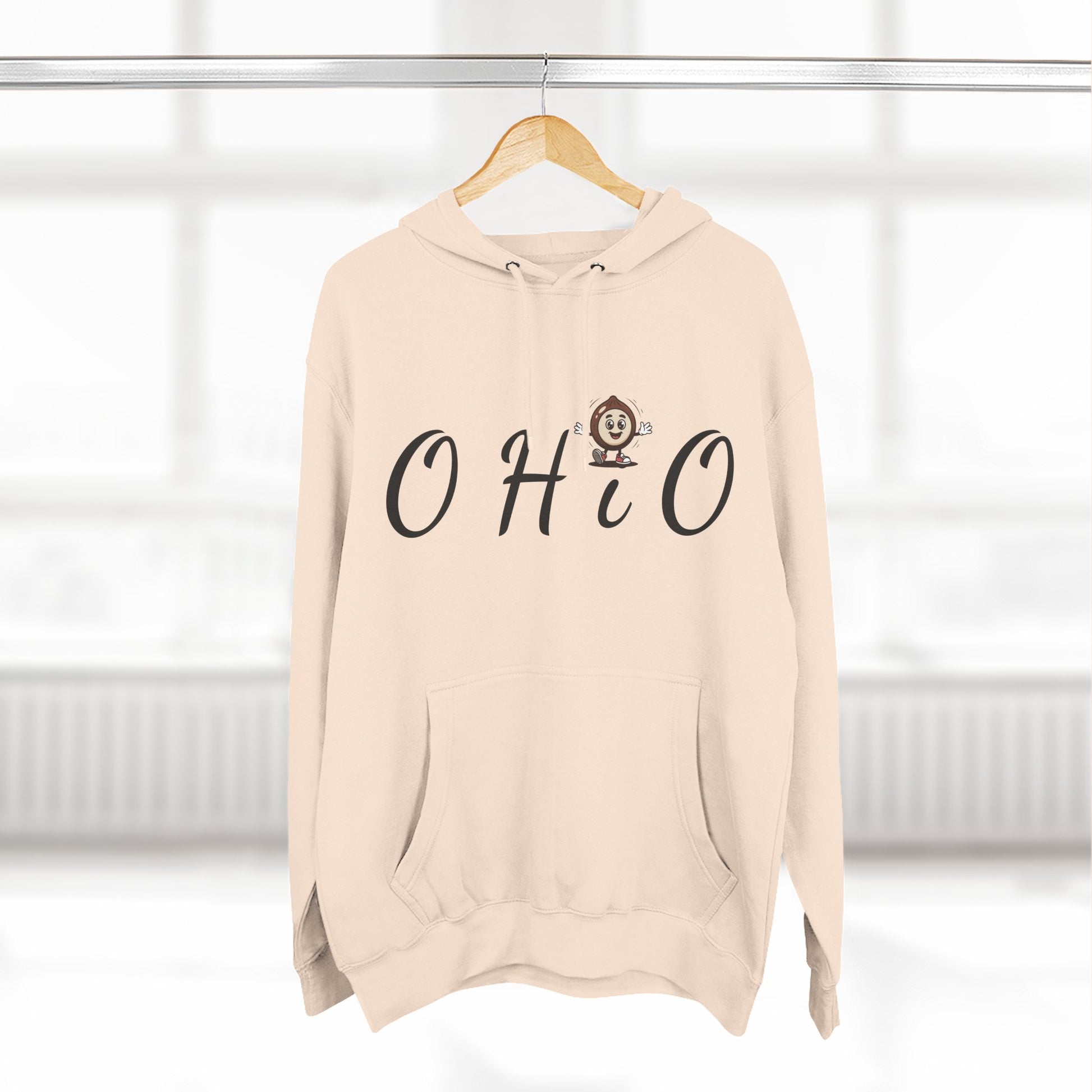 Ohio Script Hoodie with Cute Buckeye Mascot