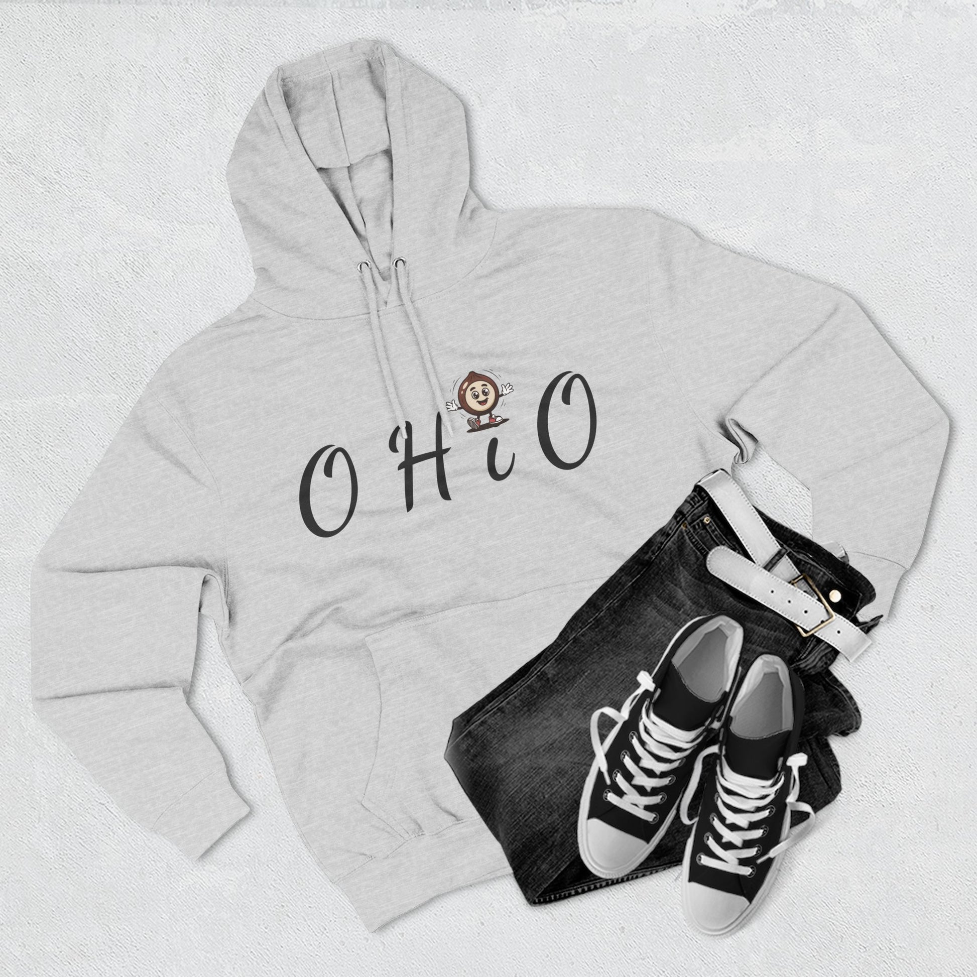 This midweight hoodie feels like a familiar hug — brushed fleece that settles warm against your skin, a roomy kangaroo pocket for chilled hands, and an adjustable hood that tucks in when you need quiet. The soft cotton exterior takes embroidery beautifully, here framing a playful Ohio script and a small mascot on the chest. Clean lines, durable stitching, and a slightly relaxed fit make it a go-to layer for slow mornings, park strolls, or evenings by a bonfire. It wears like something you’ve owned for years from the first day: cozy, sturdy, and quietly cheerful.
