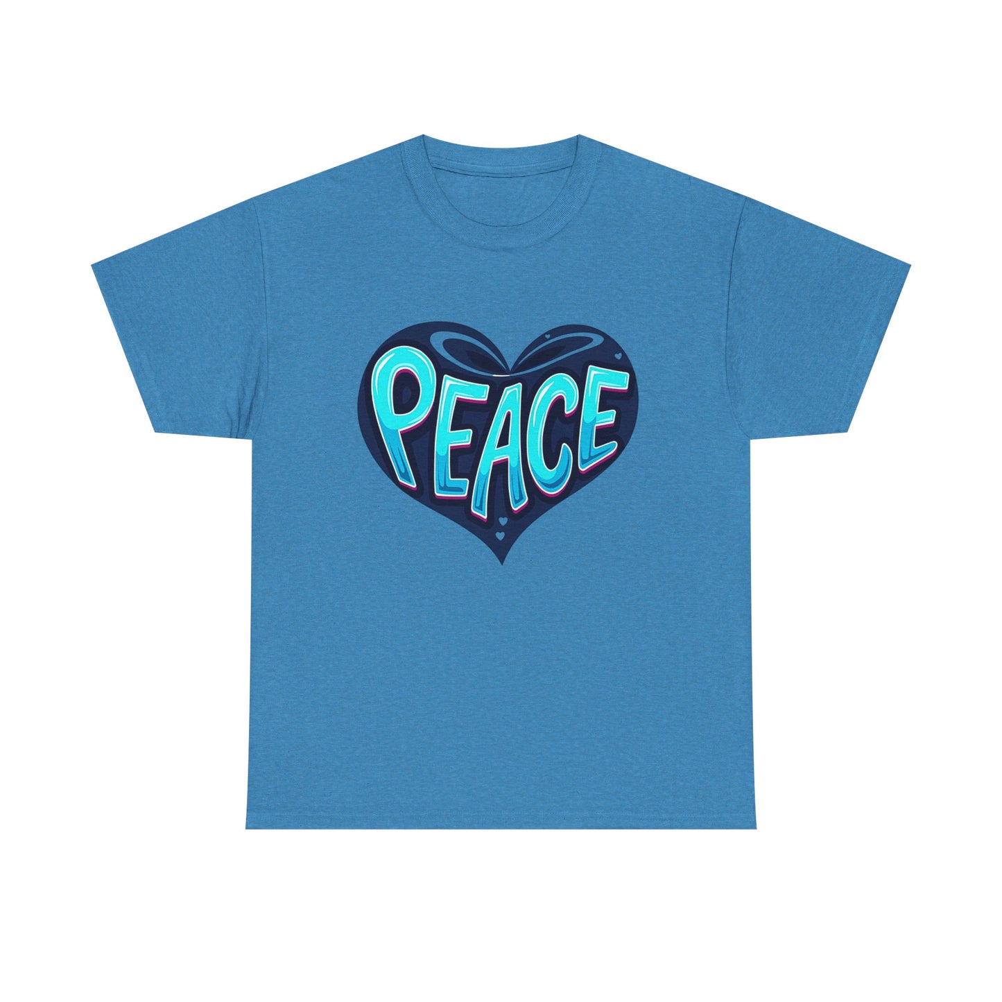 This groovy Peace heart T-Shirt exudes a peaceful and positive vibe, perfect for anyone looking to spread love and harmony. It is a versatile piece that can be worn casually or dressed up for a fun, retro look. Ideal for those who appreciate vintage-inspired designs and want to make a statement with their outfit. Perfect for Valentine's Day, peace festivals, and everyday wear.