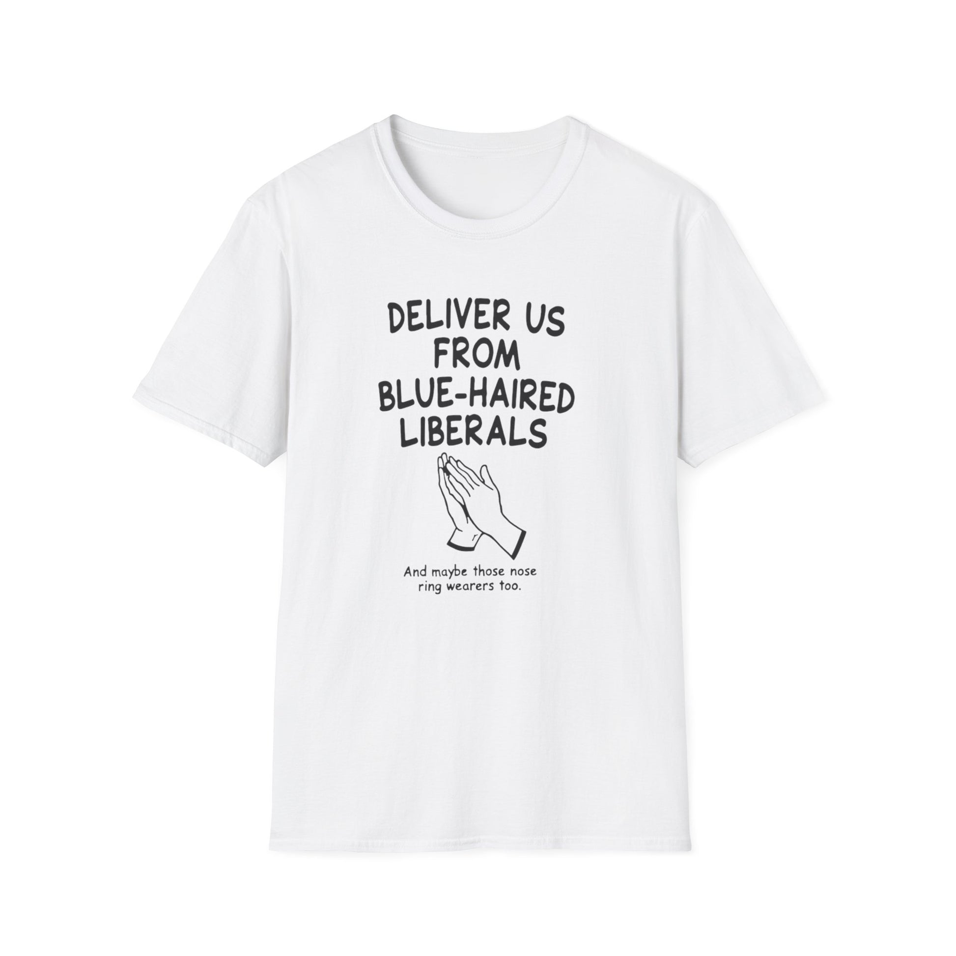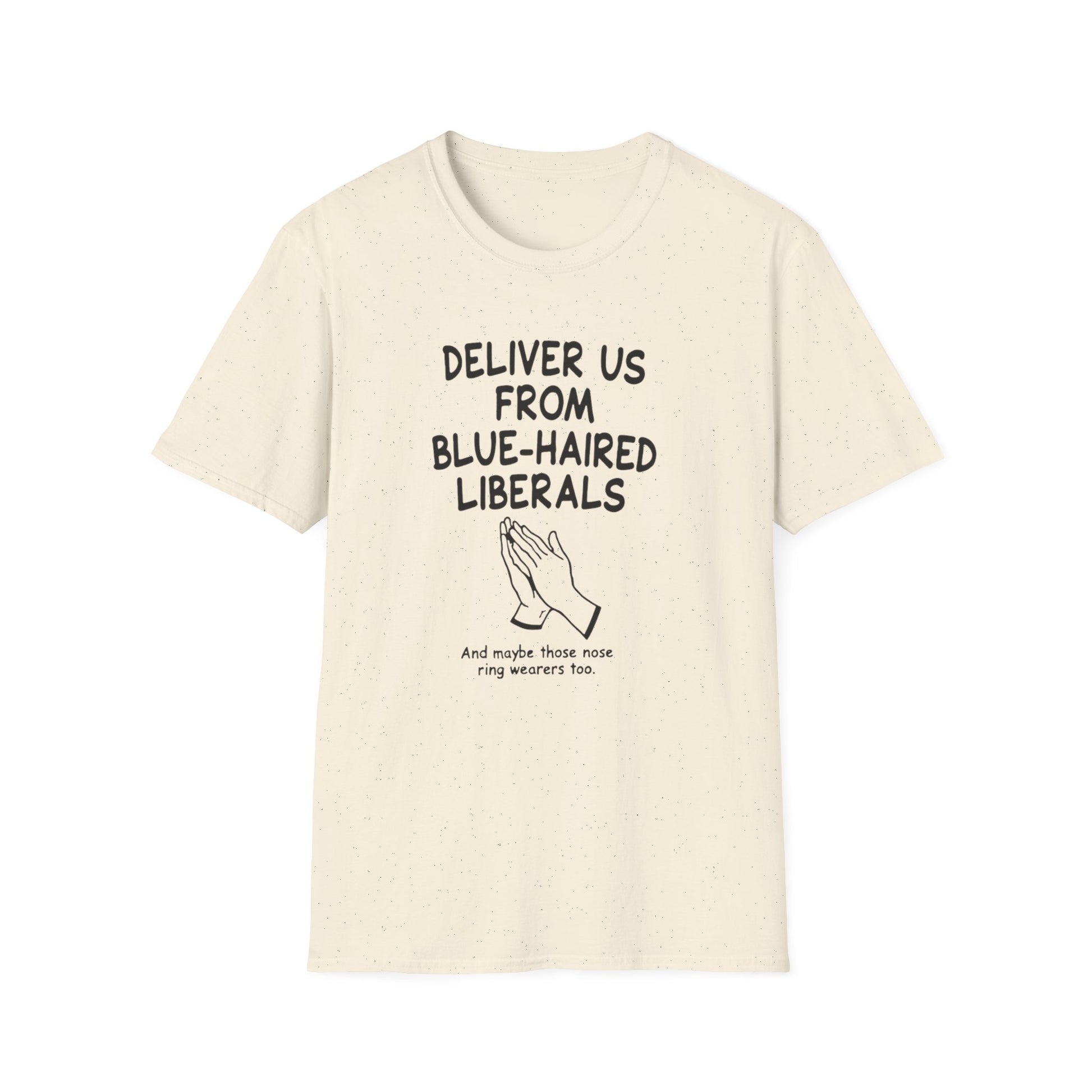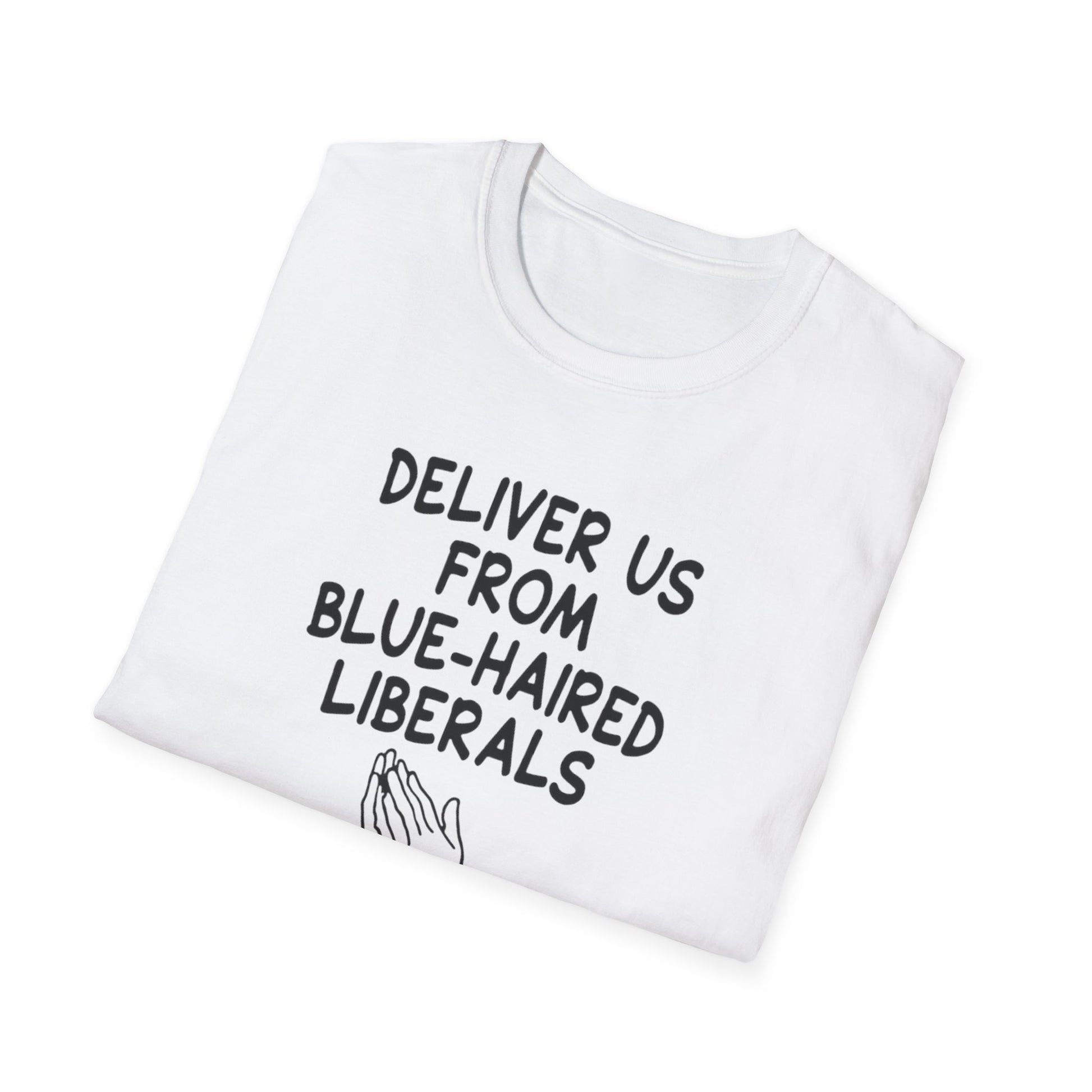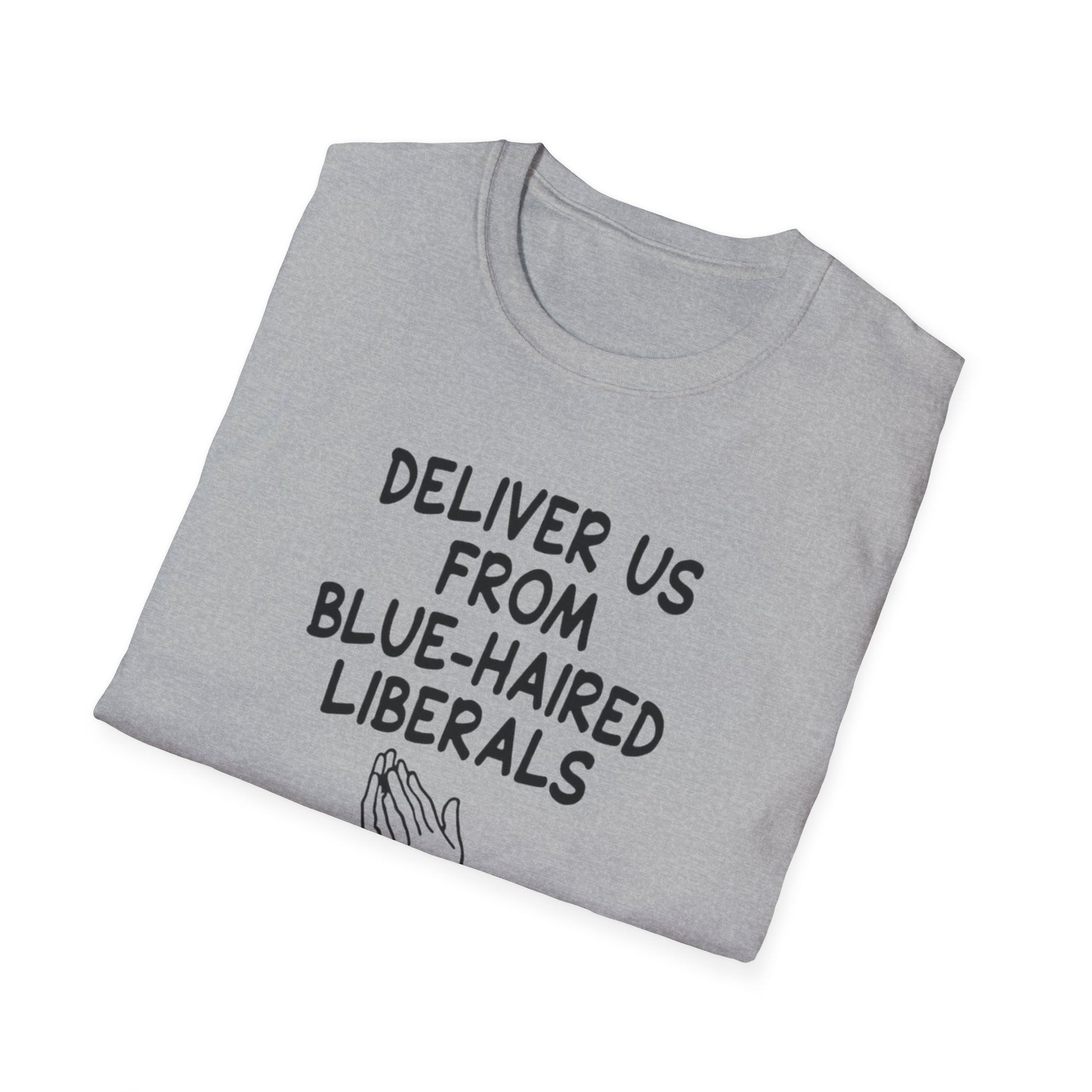 Political T-Shirt — "Deliver Us From Blue-Haired Liberals" Statement Tee