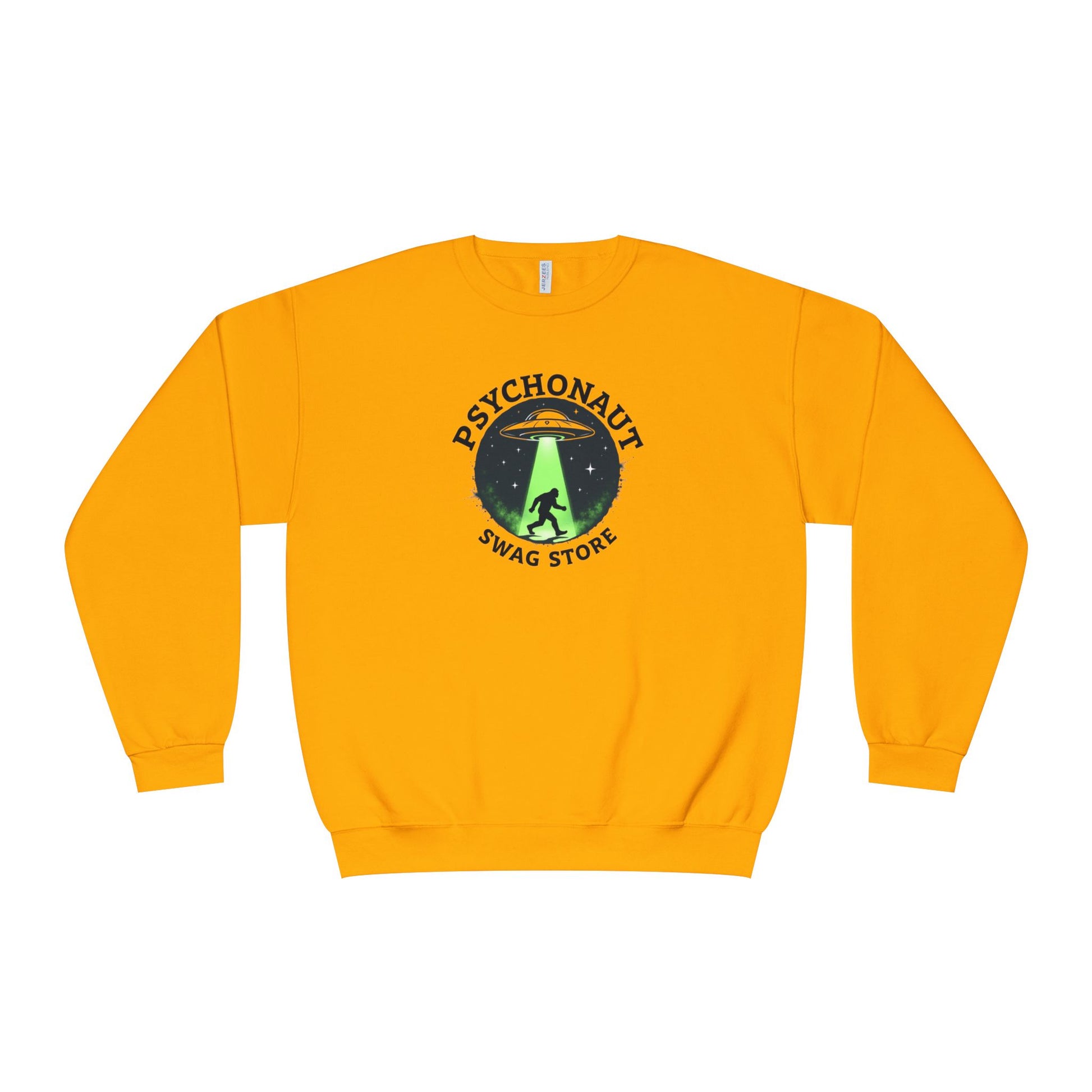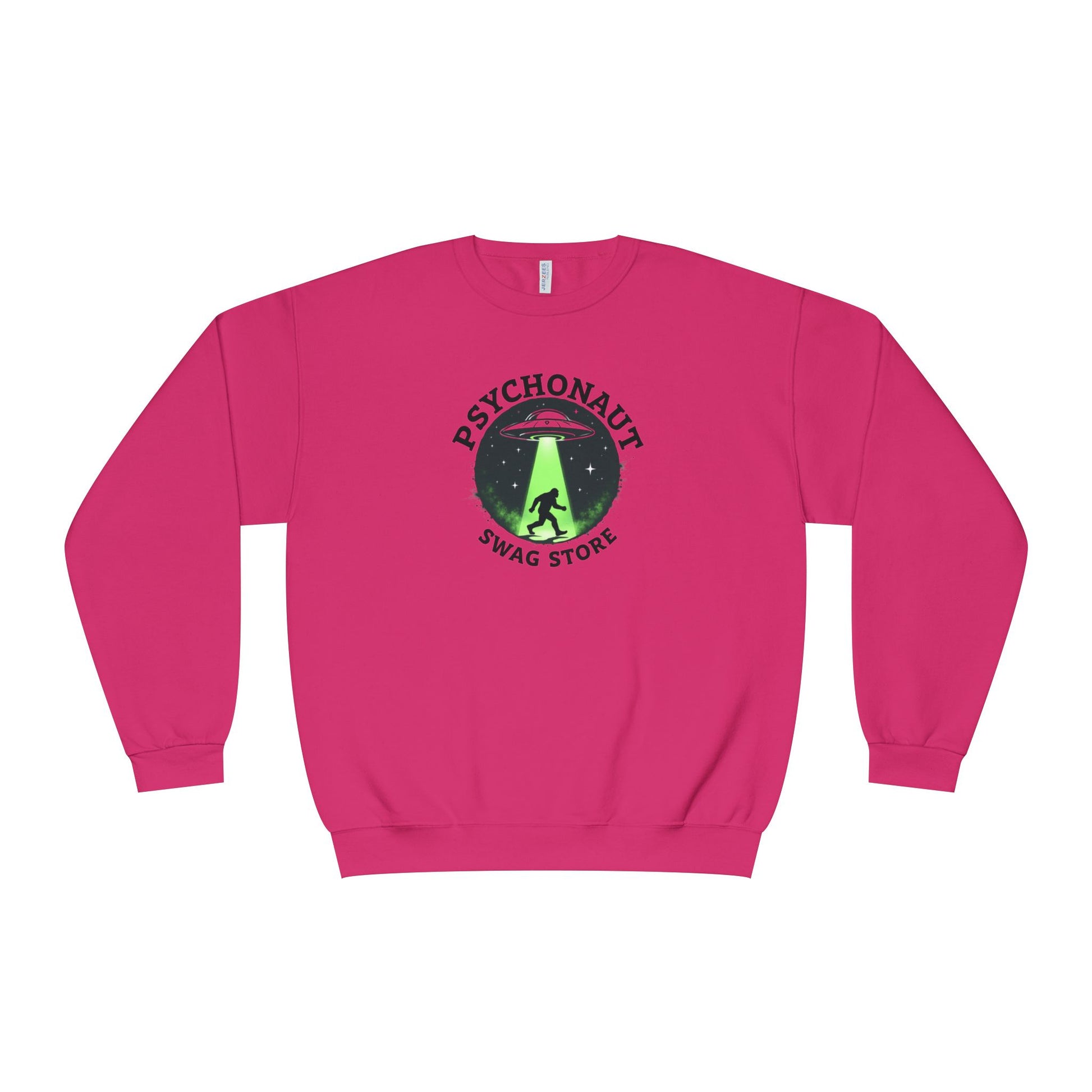 Slide this cozy crewneck on and feel like you’ve stepped into a late-night roadtrip under a neon sky. The bold “Psychonaut” emblem and glowing UFO beam make a playful, slightly eerie statement — equal parts curiosity and campfire storytelling. Wear it when the conversation turns to strange sightings, deep dreams, or your favorite weird podcast. The soft, medium-weight fleece holds its shape through repeat wears and washes, while the clean white backdrop makes that lime-green beam pop. It’s a sweatshirt that reads like an inside joke to fellow explorers of the uncanny, warming you through brisk nights and slow mornings alike.