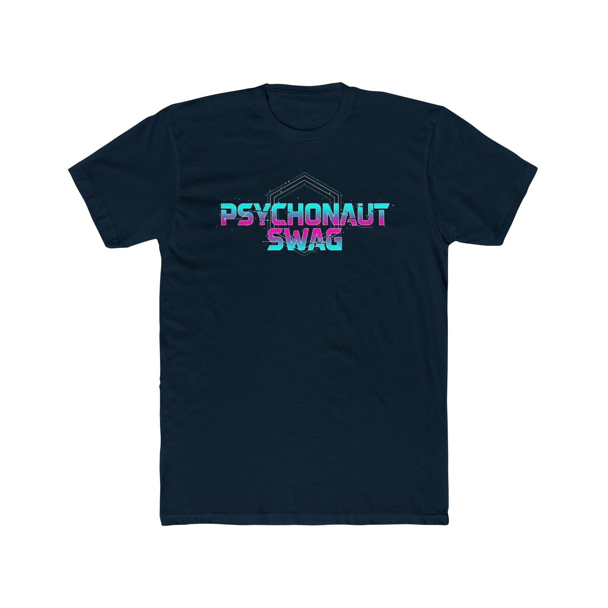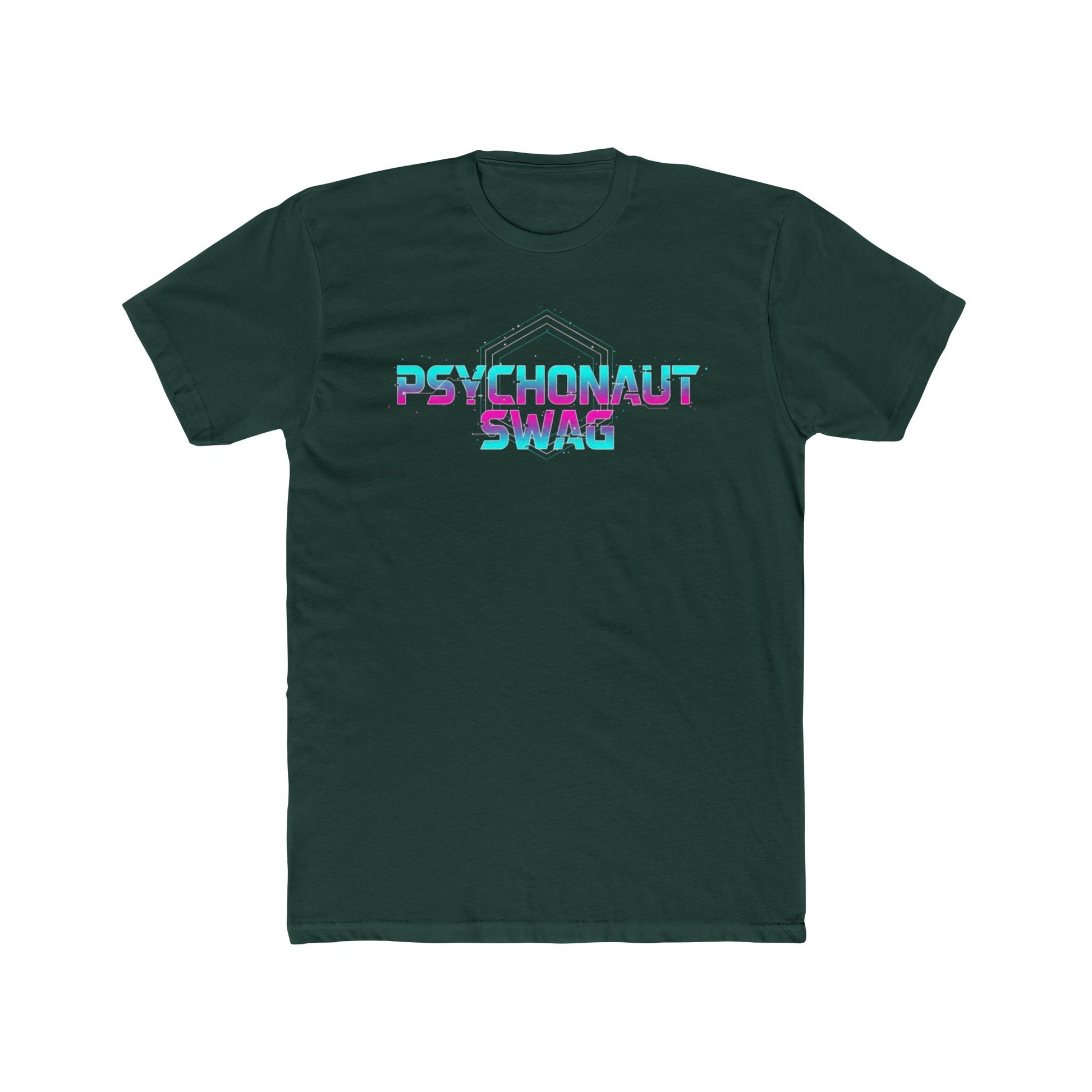 This lightweight cotton crew tee carries a bold, retro-futuristic vibe — neon “PSYCHONAUT SWAG” lettering set against moody geometric lines. It feels like a late-night arcade score or a quiet, electric drive through a city that never sleeps. Soft to the touch and breezy in wear, the shirt layers easily under jackets or stands alone as a statement piece. Wear it when you want your look to read curious, confident, and a little otherworldly. The clean crew neckline and classic fit keep the silhouette timeless while the vivid sleeve and chest print add the personality.