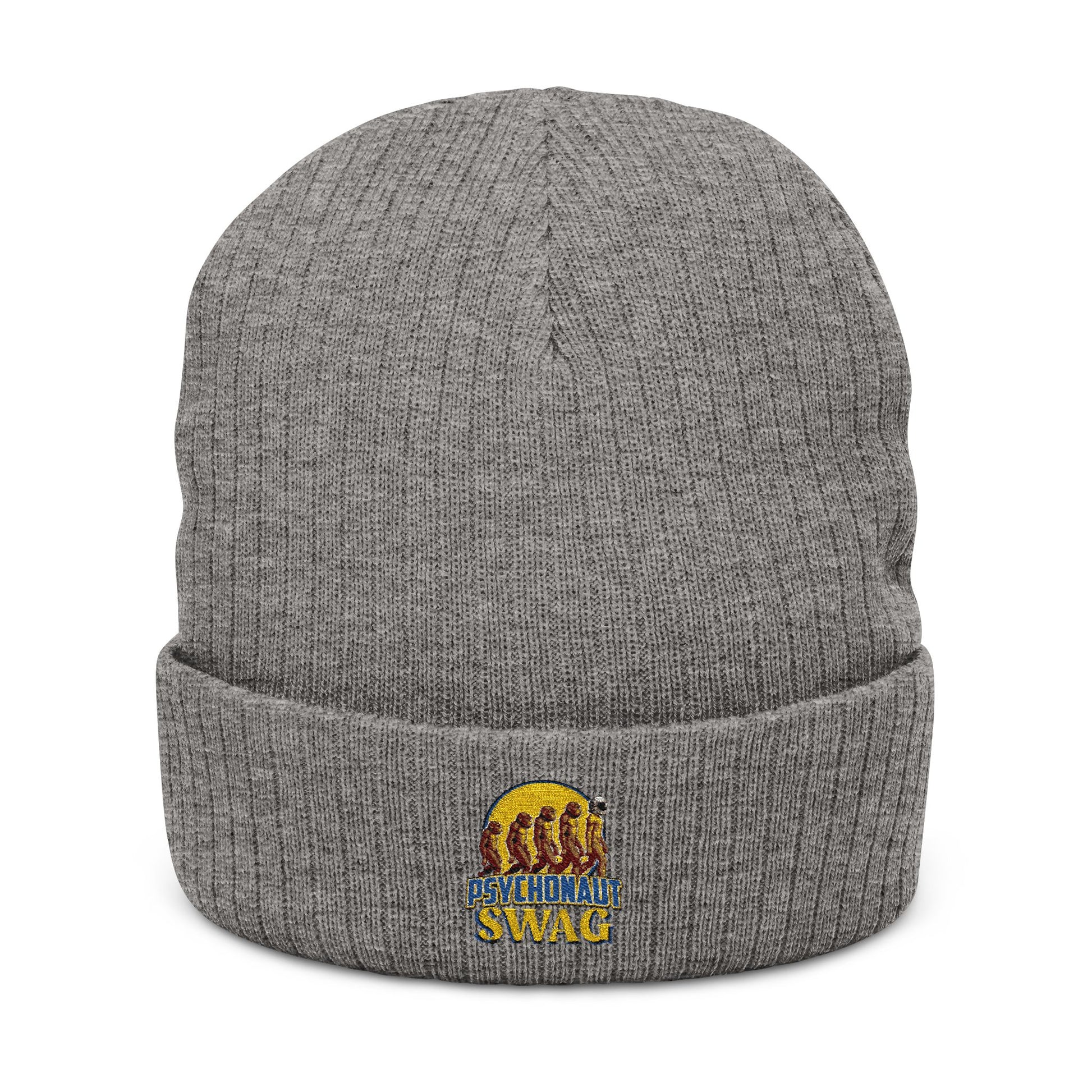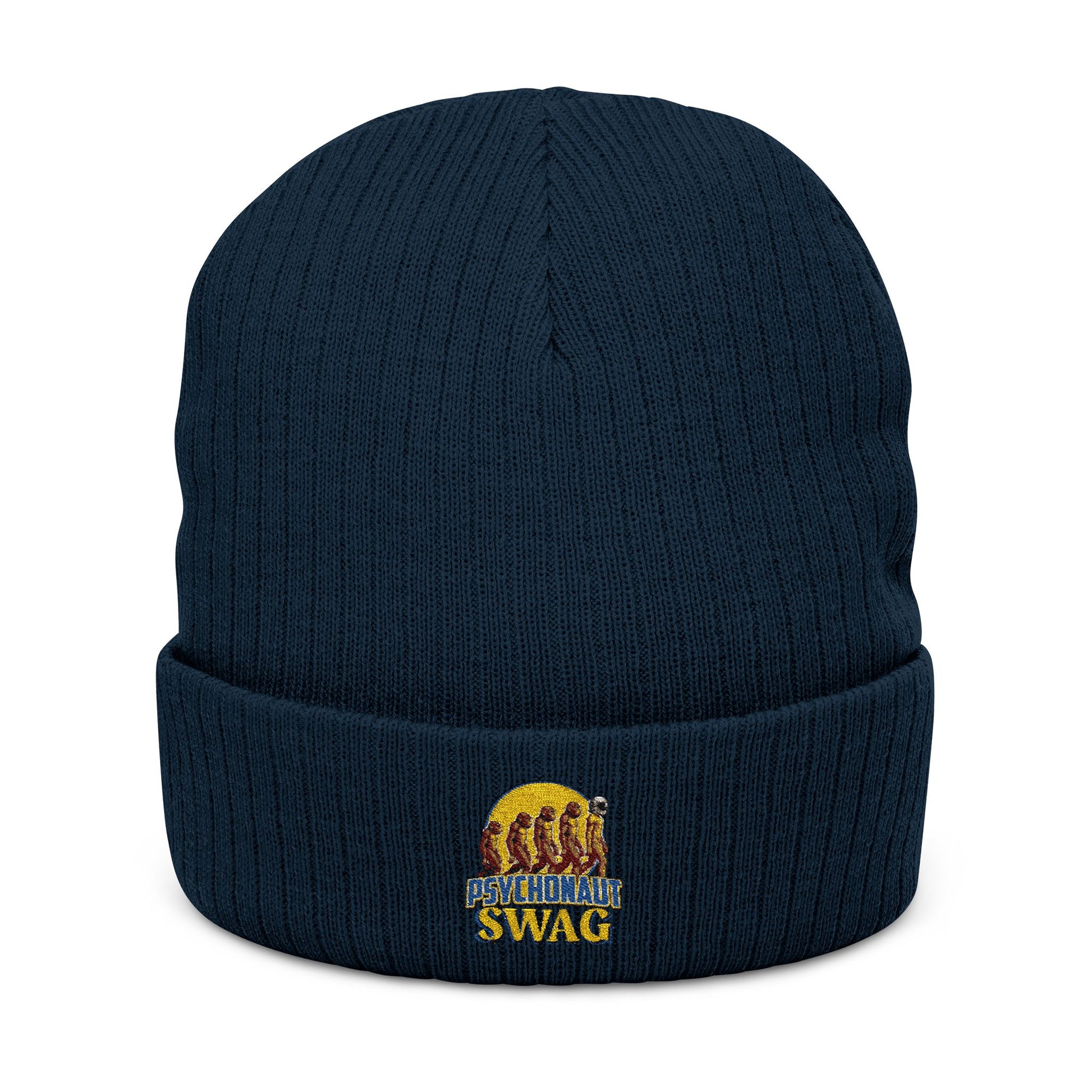 Psychonaut swag, small biz, Ribbed Knit Beanie - Cozy Embroidered Headwear for All Seasons, Winter Fashion, Gift Idea, Casual Style, Outdoor Fun