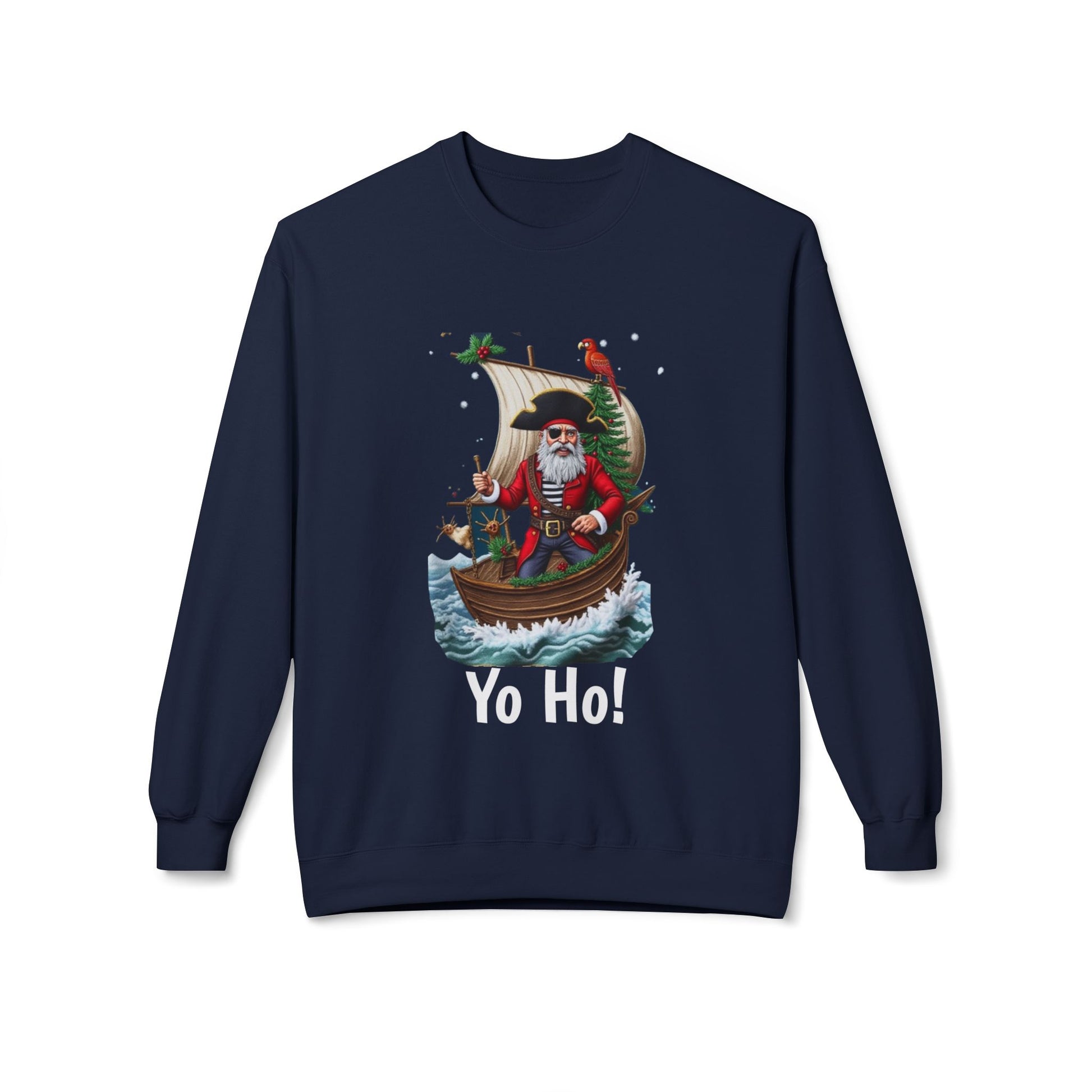 Santa Pirate, Yo Ho, Crewneck Sweatshirt — Nautical Christmas Holiday Sweater