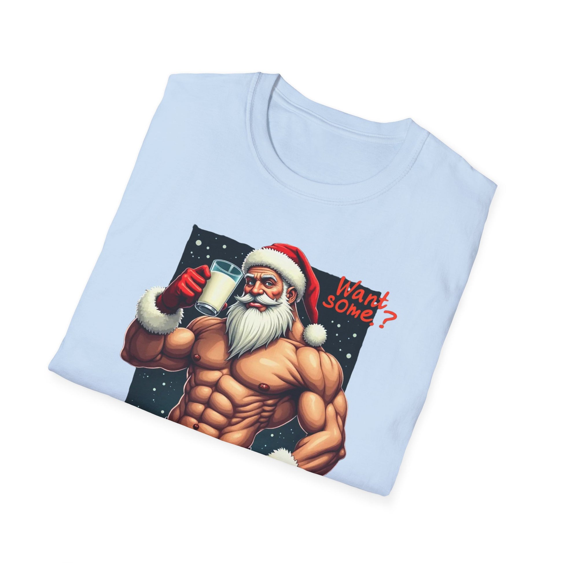 After a tough workout or a long night of holiday chaos, this tee brings a wink of warmth and a little absurd joy. Picture Santa — chalky milk mustache, hair still rumpled — sharing a quiet post-workout sip in the gym locker room. The image is playful, slightly irreverent, and rooted in everyday moments that feel honest and human. Soft against skin, the shirt sits like a companion you reach for when you want to laugh, unwind, or nod to fellow holiday ironic-sentimentalists. Wear it to low-key holiday parties, post-gym coffee runs, or cozy hangouts where people appreciate a clever, offbeat holiday nod.