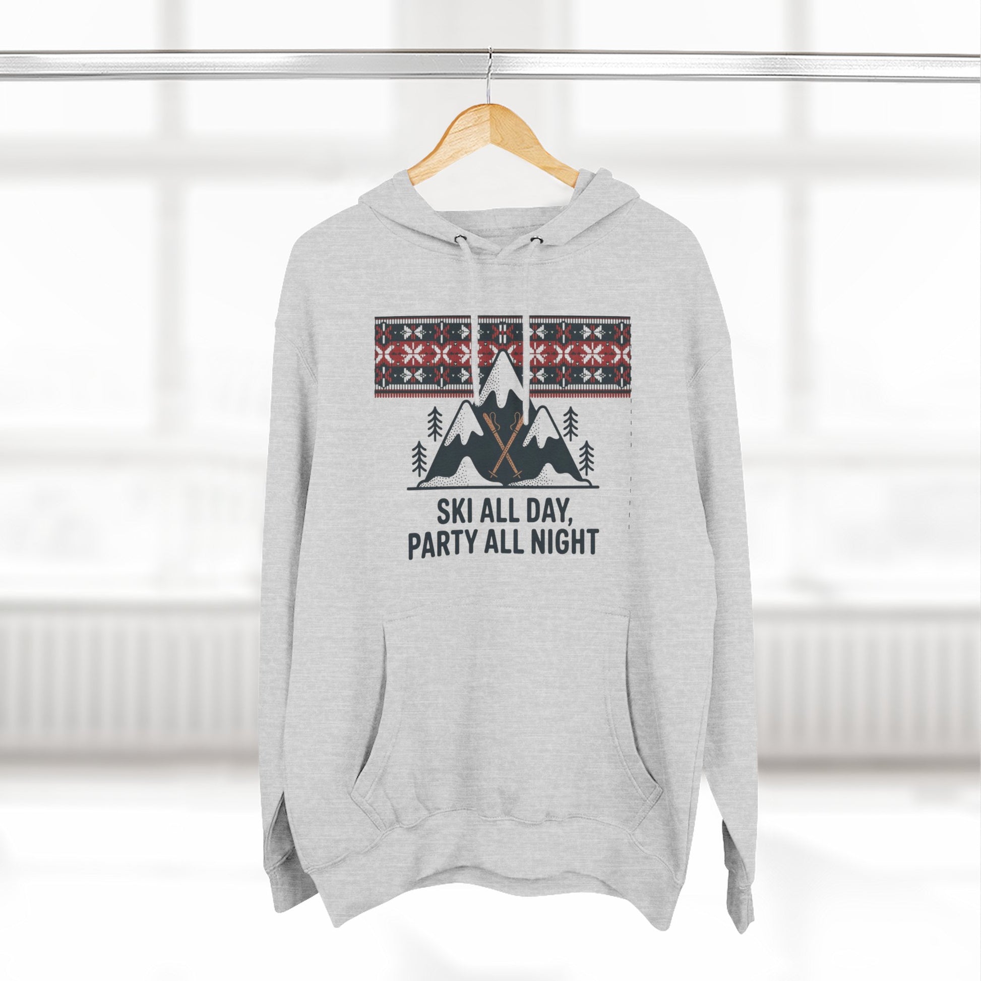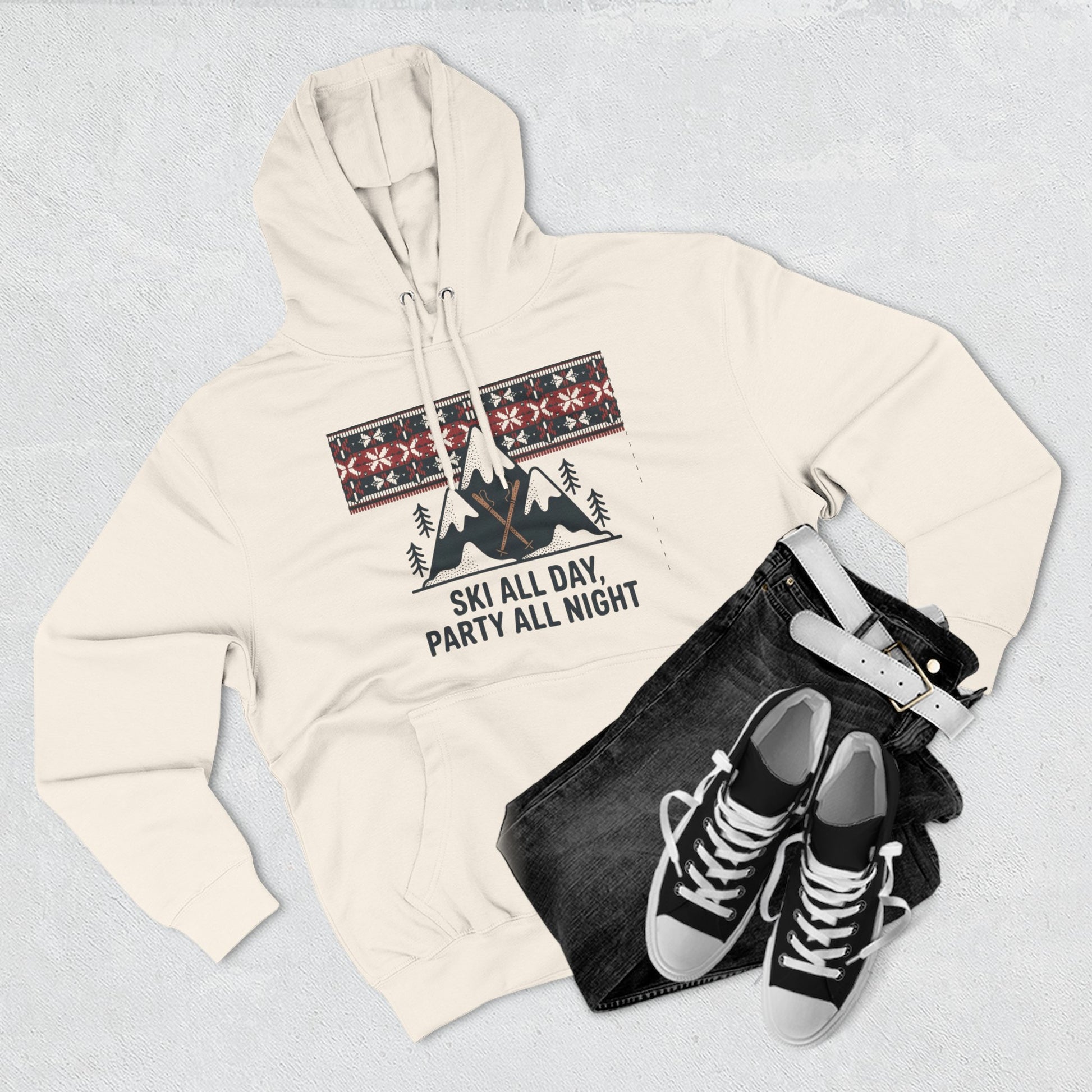 Ski All Day Party All Night Hoodie — Mountain Skiing Holiday Pullover