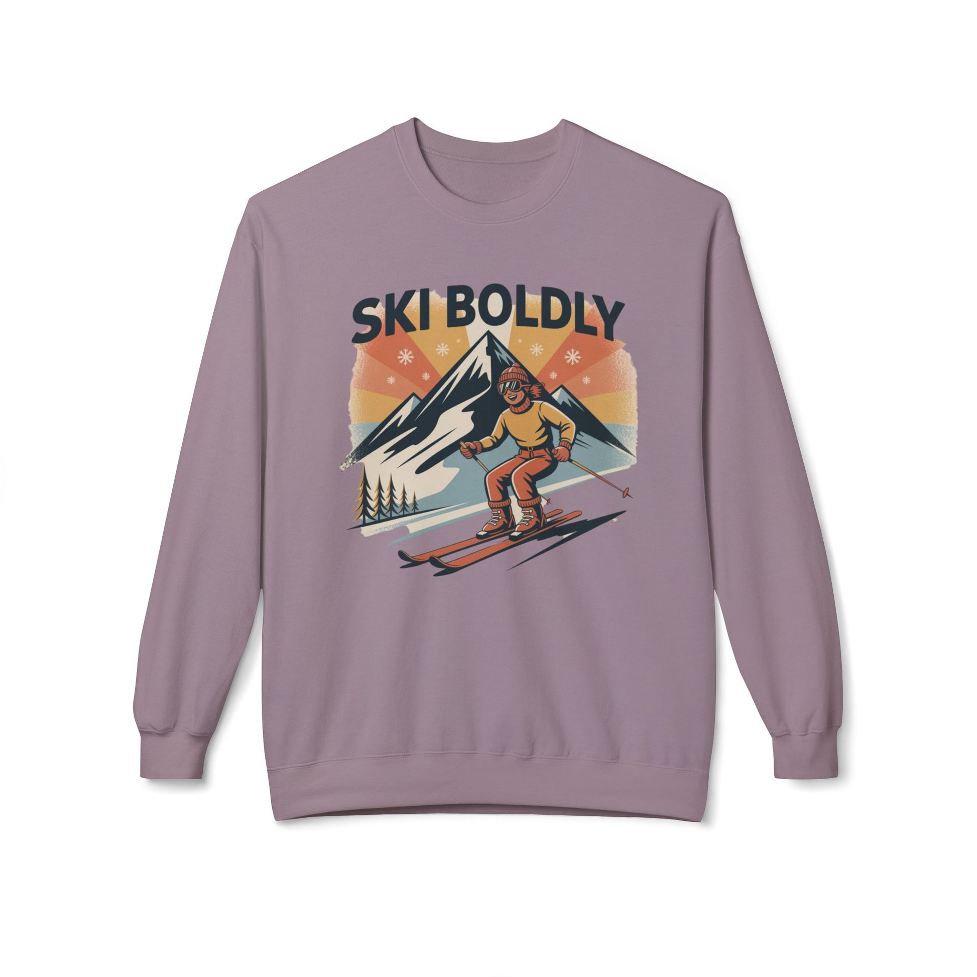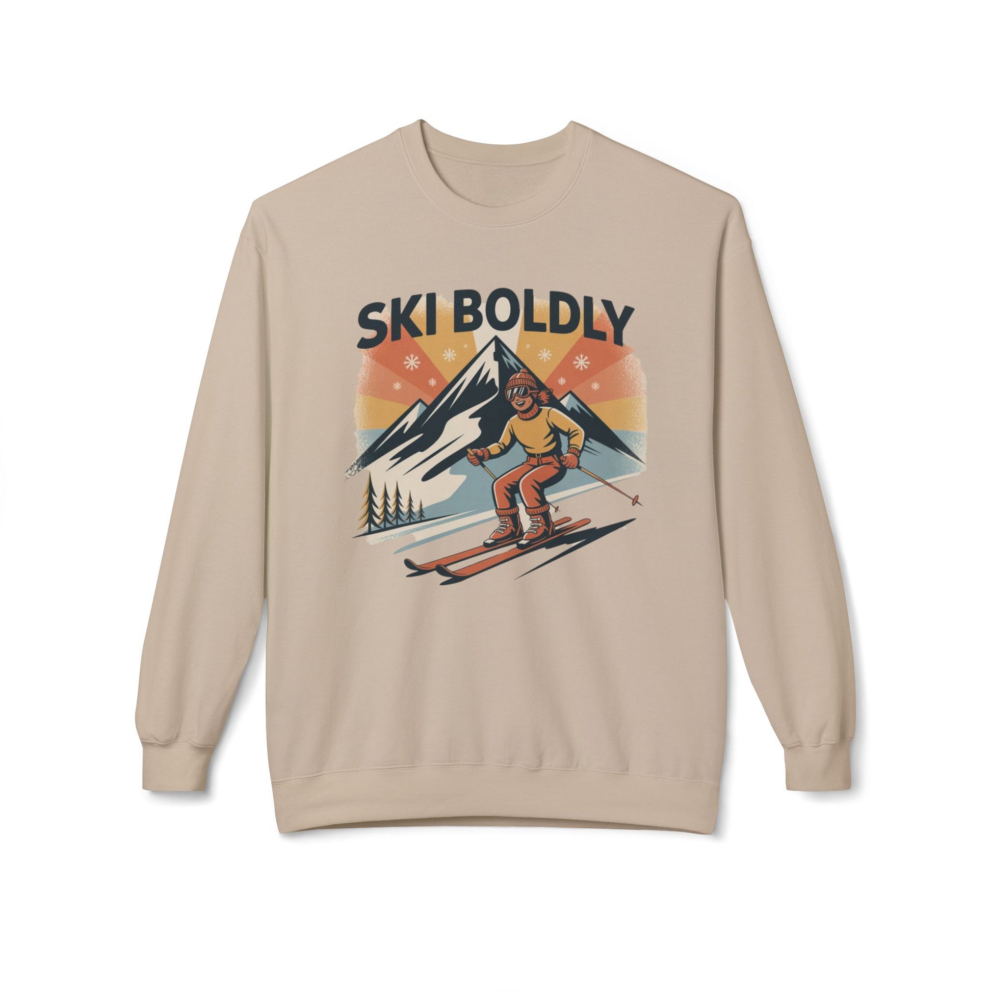 Ski Boldly Crewneck Sweatshirt – Vintage Mountain Skiing Graphic