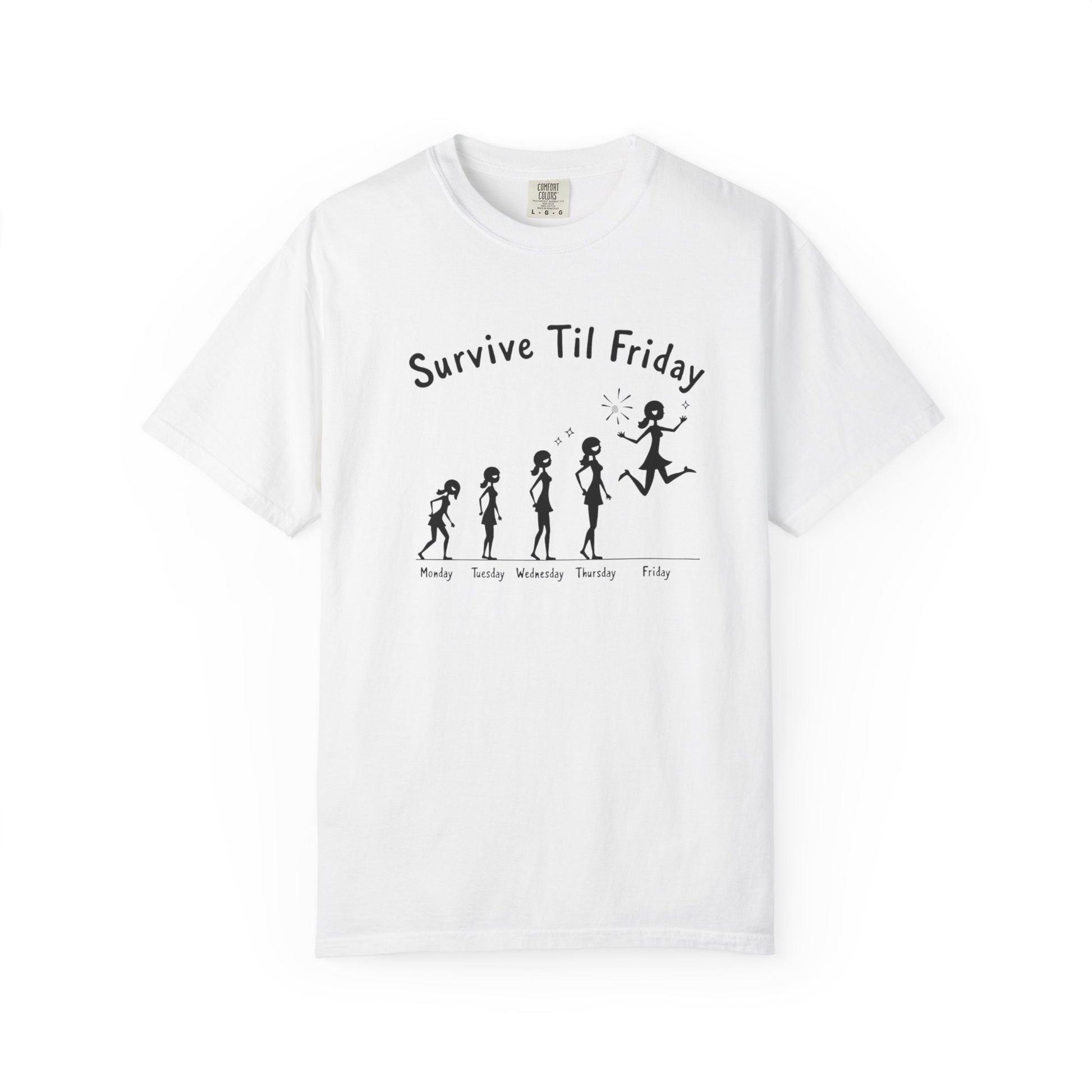 This Unisex Garment-Dyed T-Shirt exudes a relaxed, playful vibe, perfect for everyday wear. Crafted for comfort, it features a unique design that captures the week's journey from Monday to Friday, making it an ideal choice for those who embrace the hustle of the workweek.