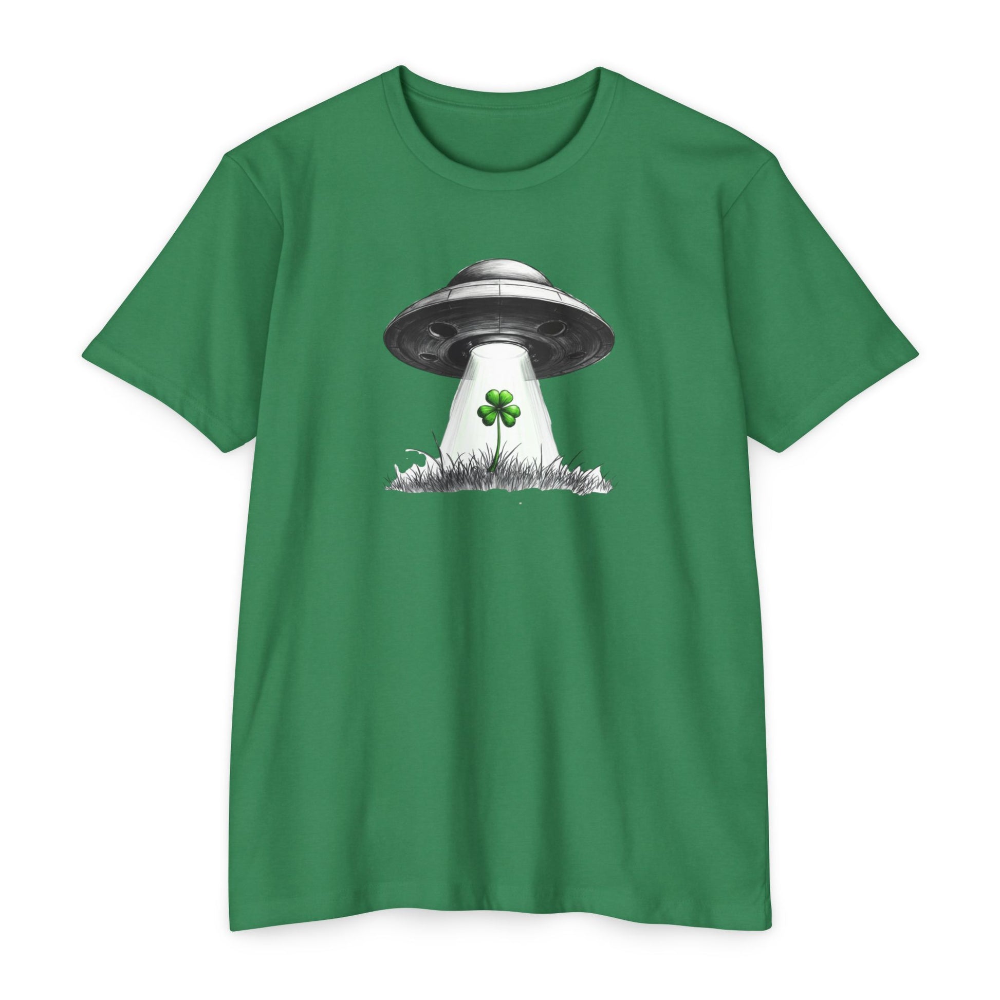 UFO Abduction Shamrock Tee — St. Patrick’s Day Alien Graphic T-Shirt